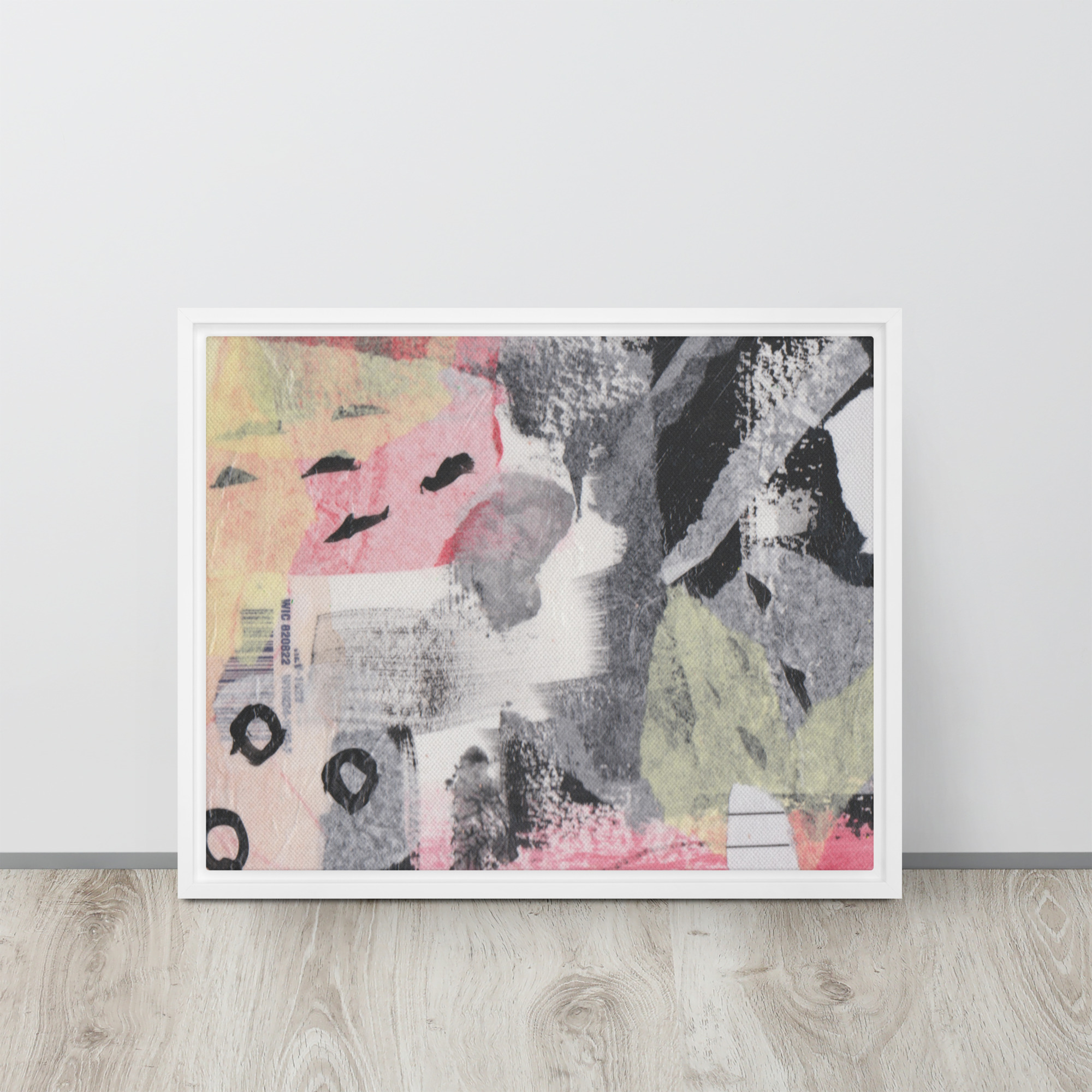 – The framed canvases with brown and black frames have a black inside around the canvas, and the canvases with white frames have a white inside around the canvas.