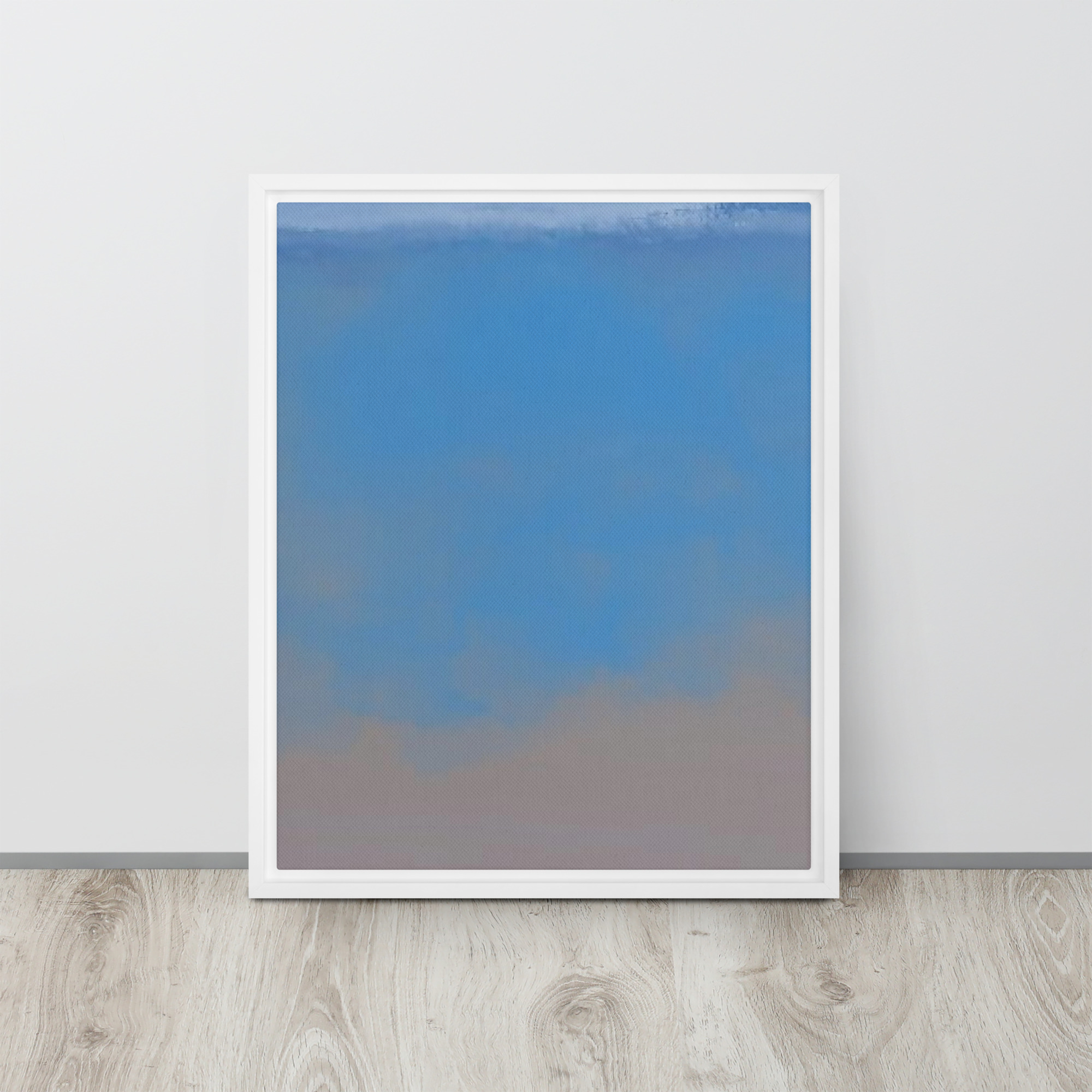 This is an abstract of the beach, a place that brings me “Peace.” This print of an original painting is on canvas and comes in a floating frame for a finished look.