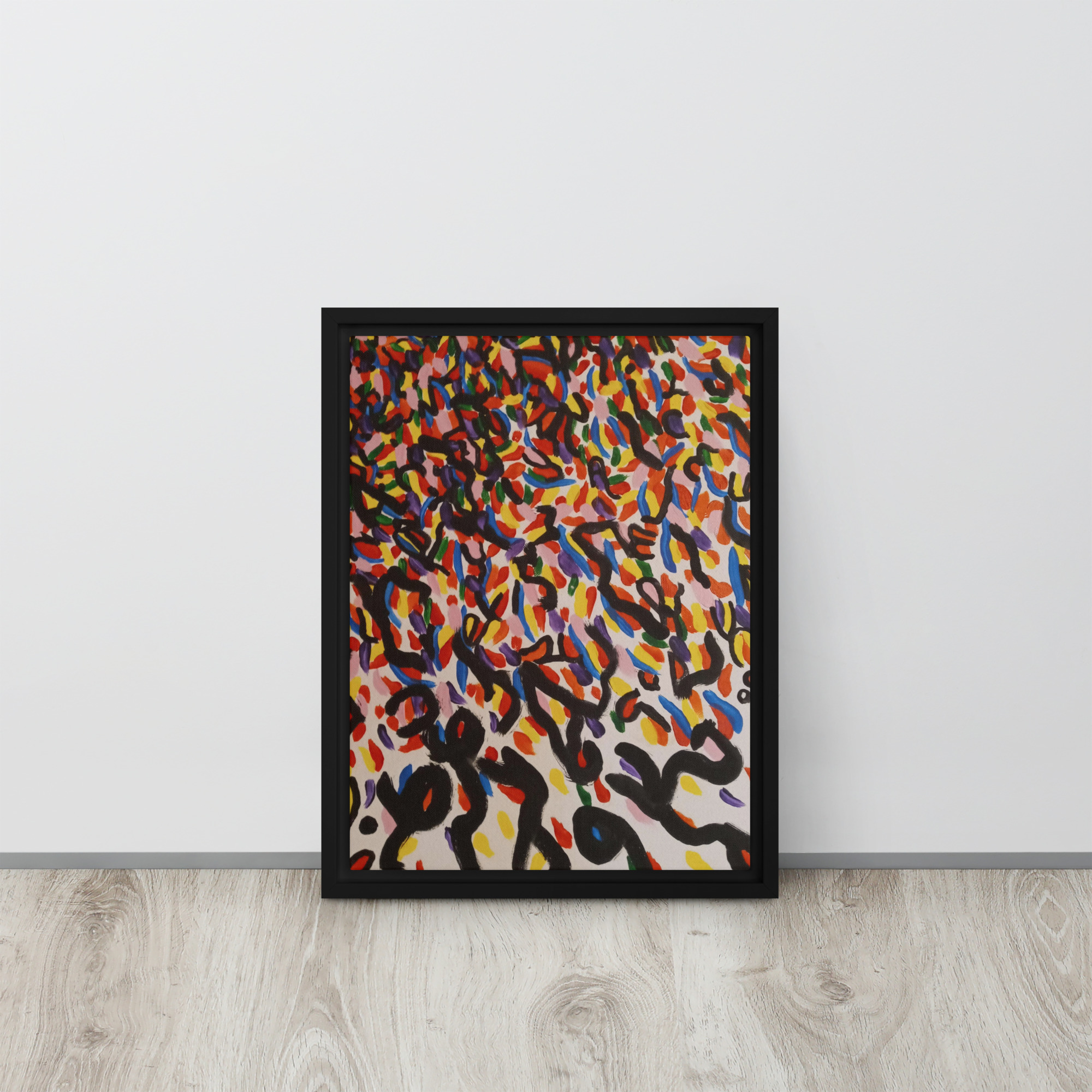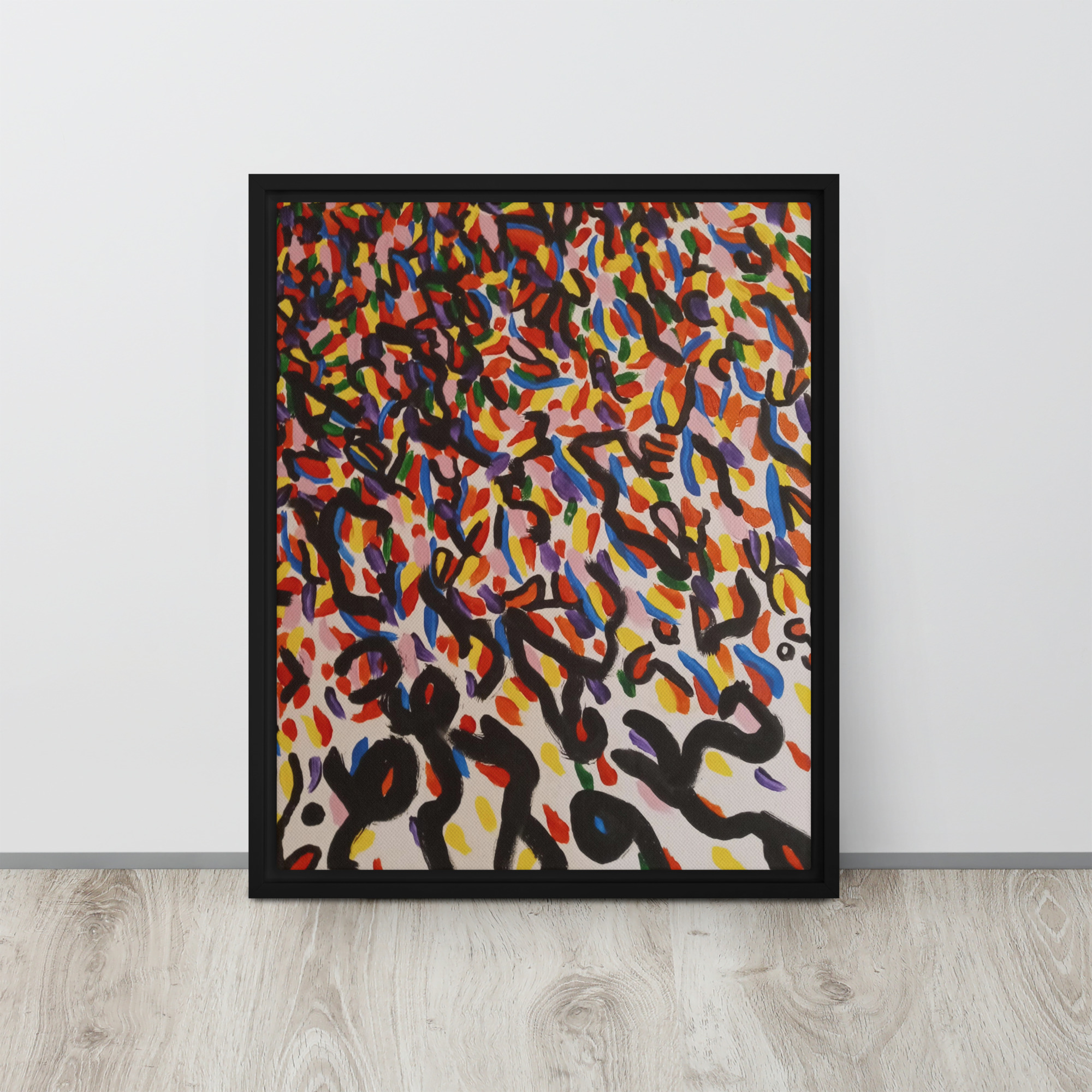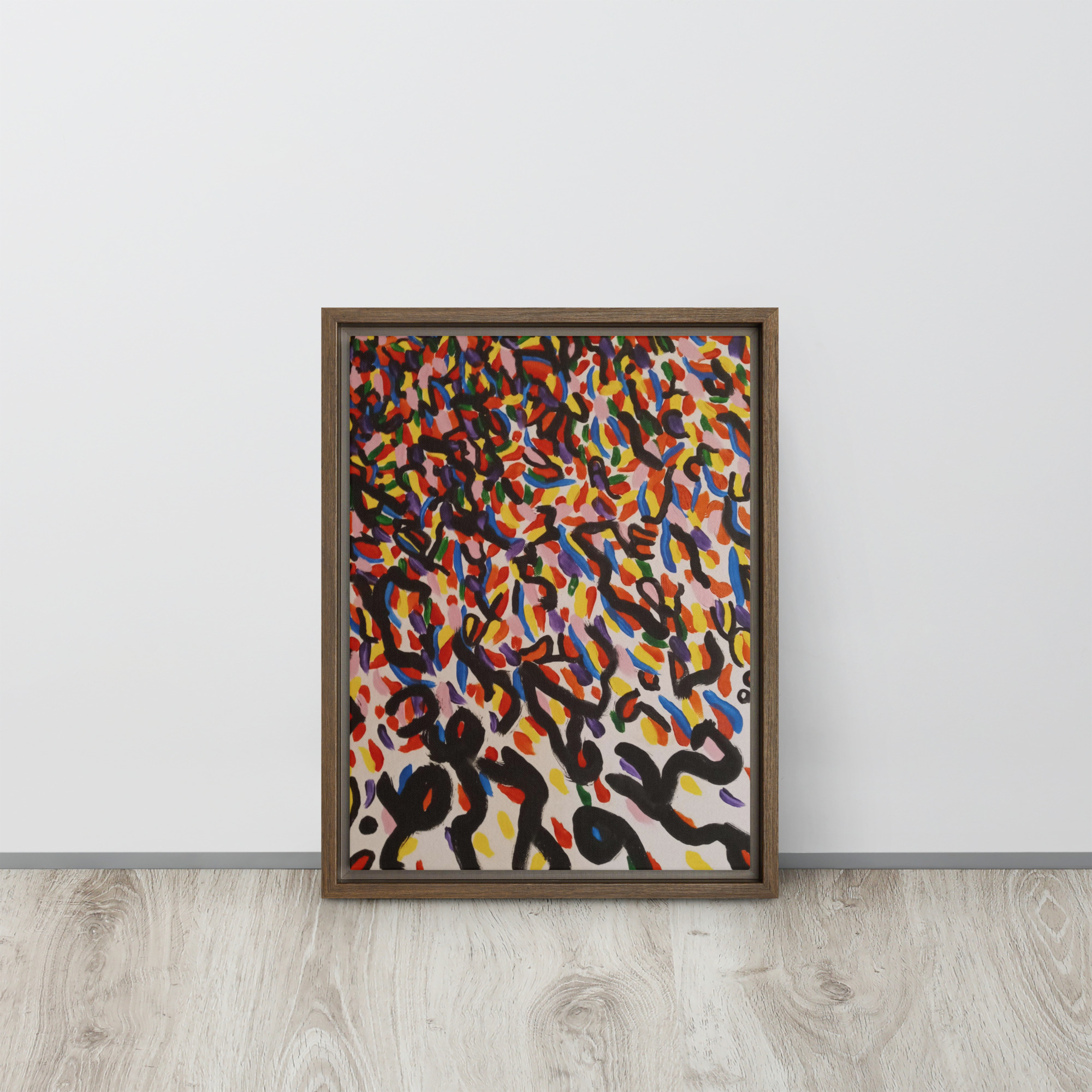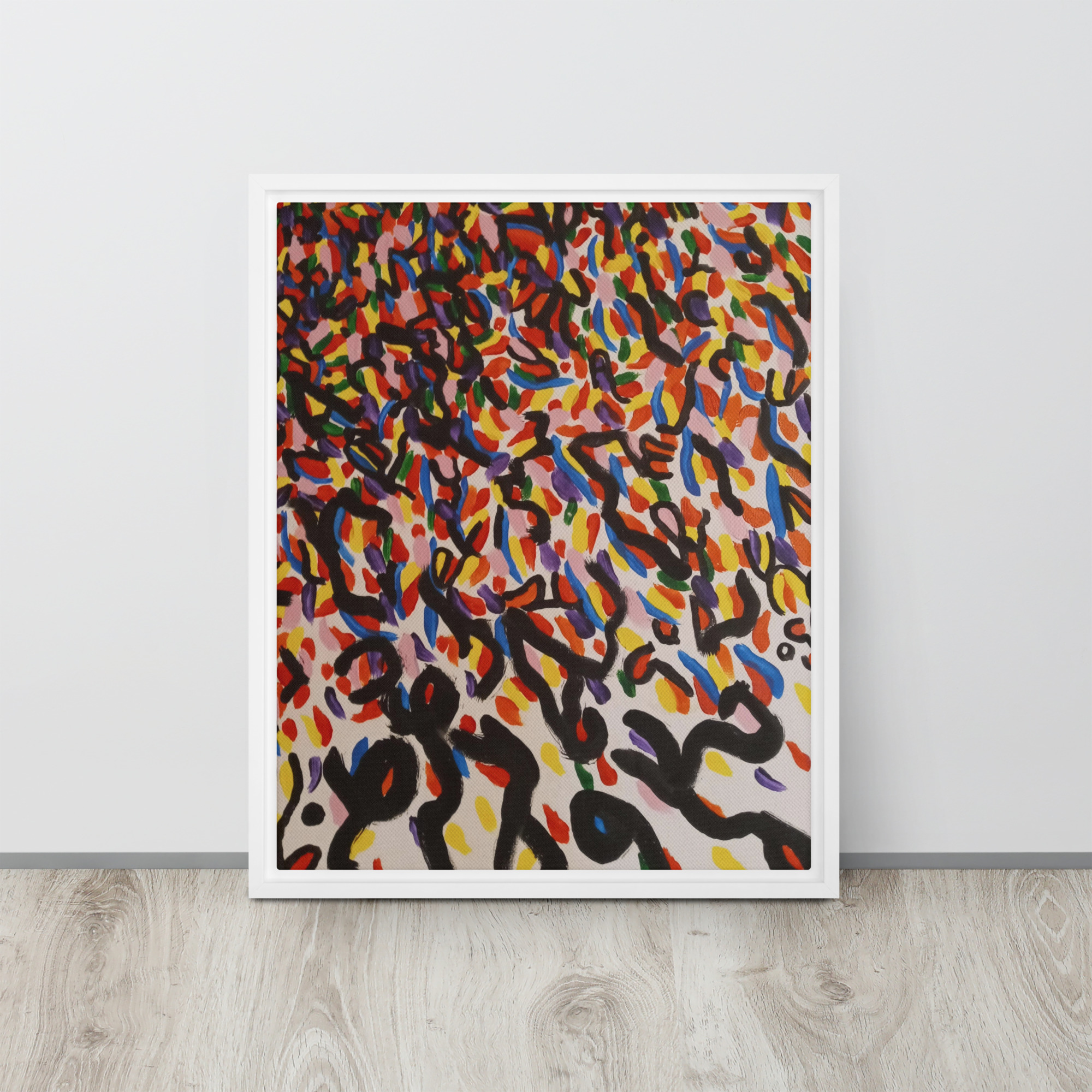 “Peril” is a visceral exploration of instability and transformation. In this abstract composition, loosely human-like forms collide, overlap, and tumble through the canvas, suggesting a world on the brink of collapse. The figures are neither fully formed nor entirely lost. Their ambiguous shapes evoke vulnerability, as if identities and bodies are unraveling under invisible forces.
