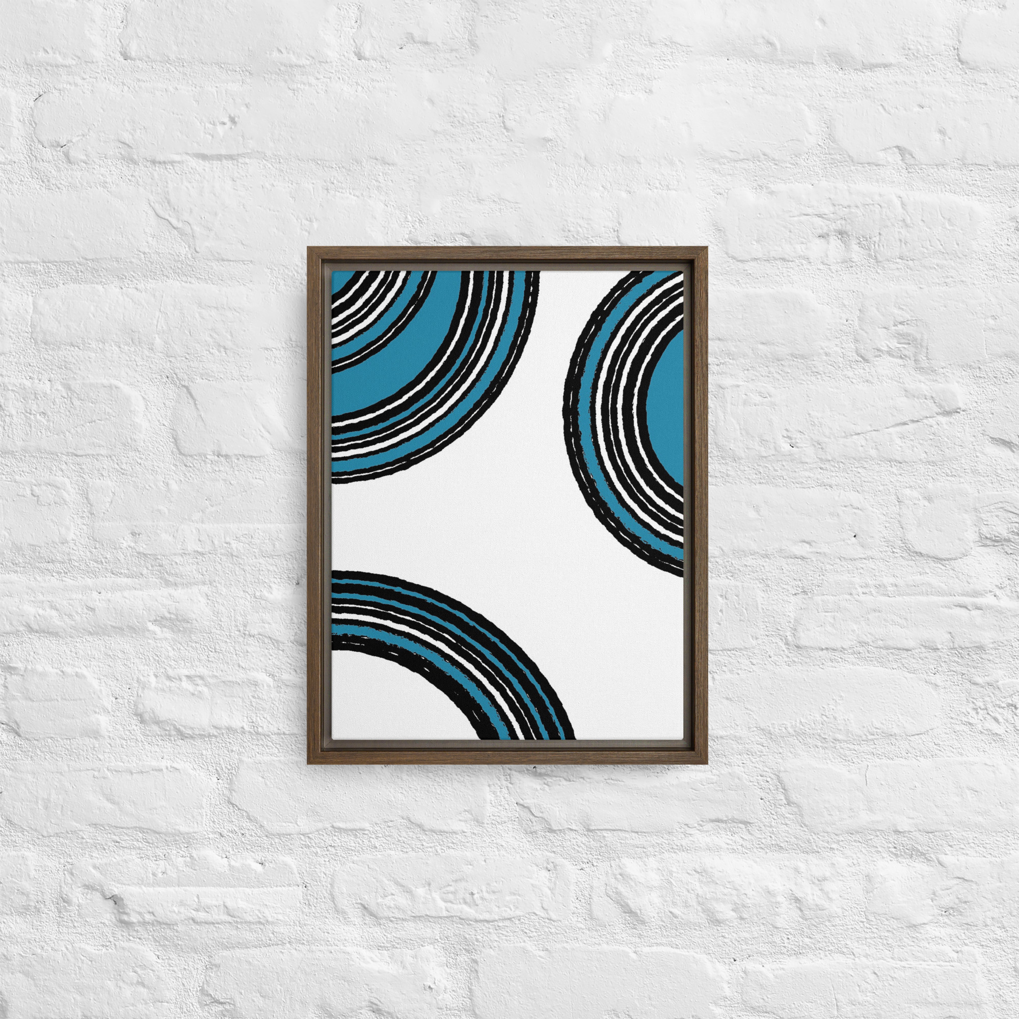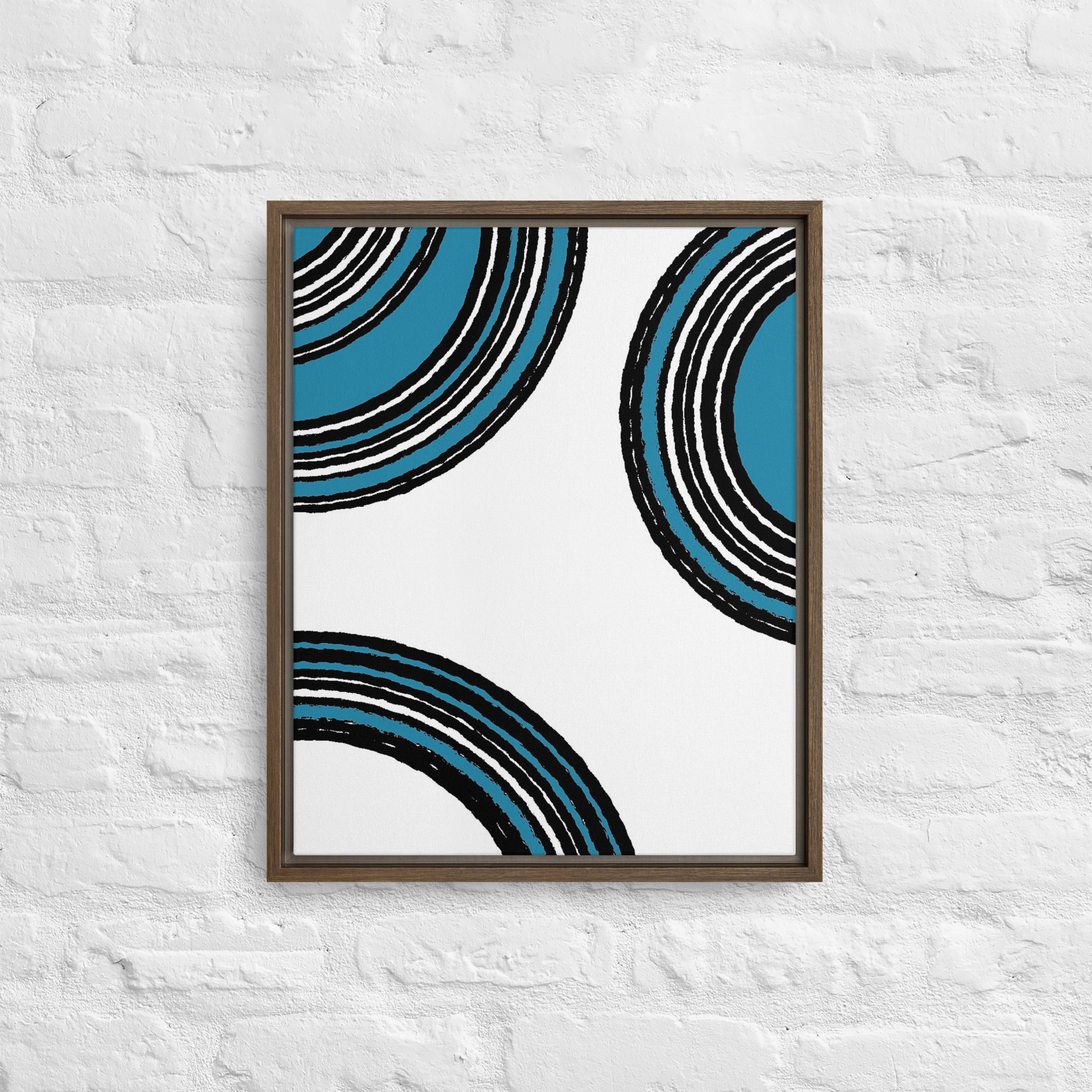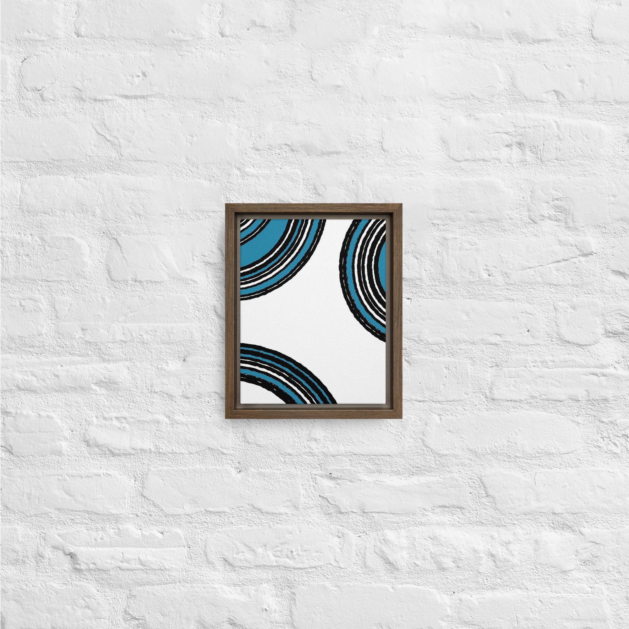 – The framed canvases with brown and black frames have a black inside around the canvas, and the canvases with white frames have a white inside around the canvas.