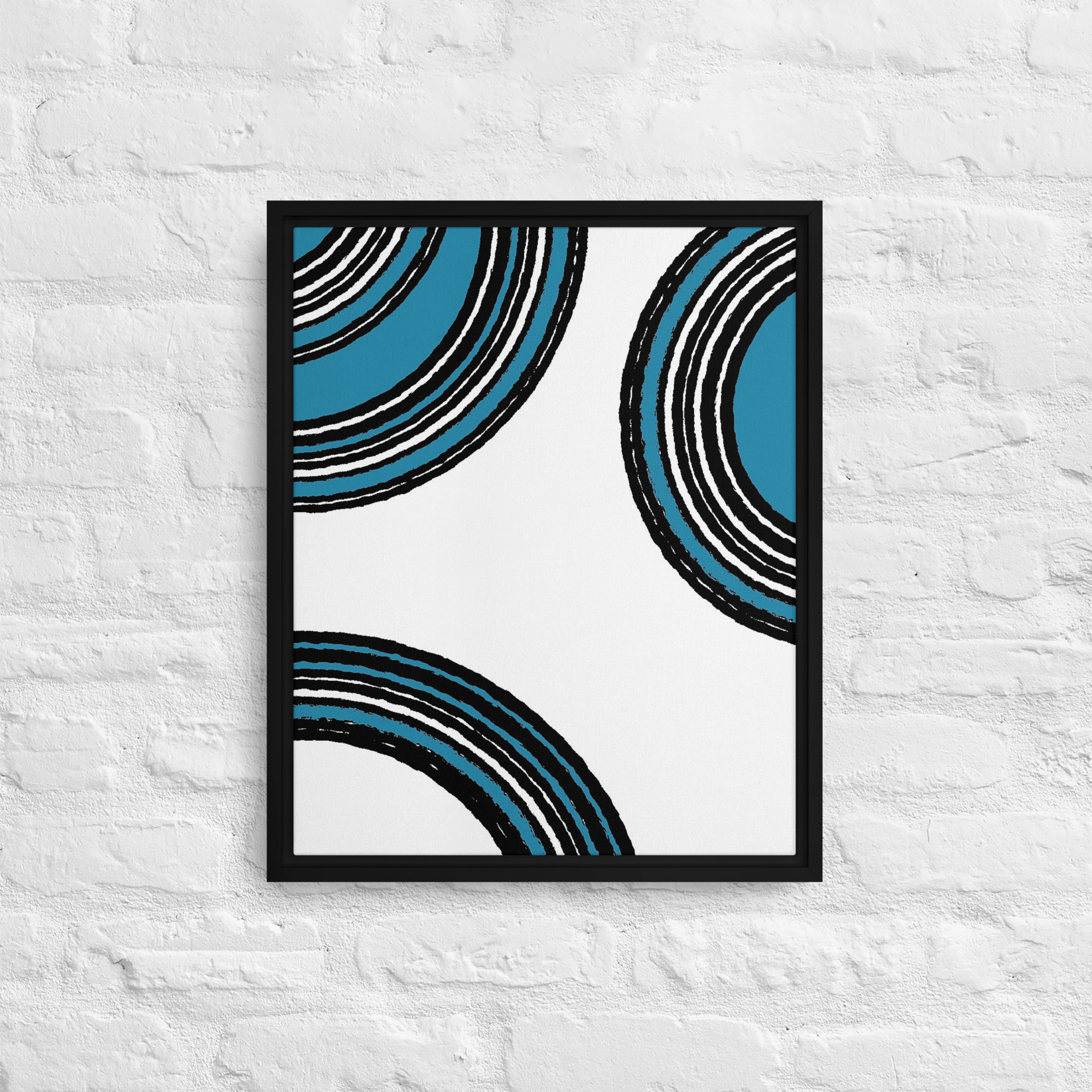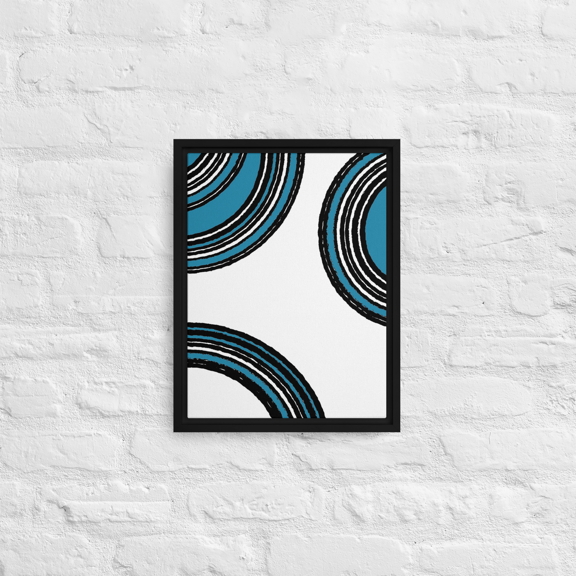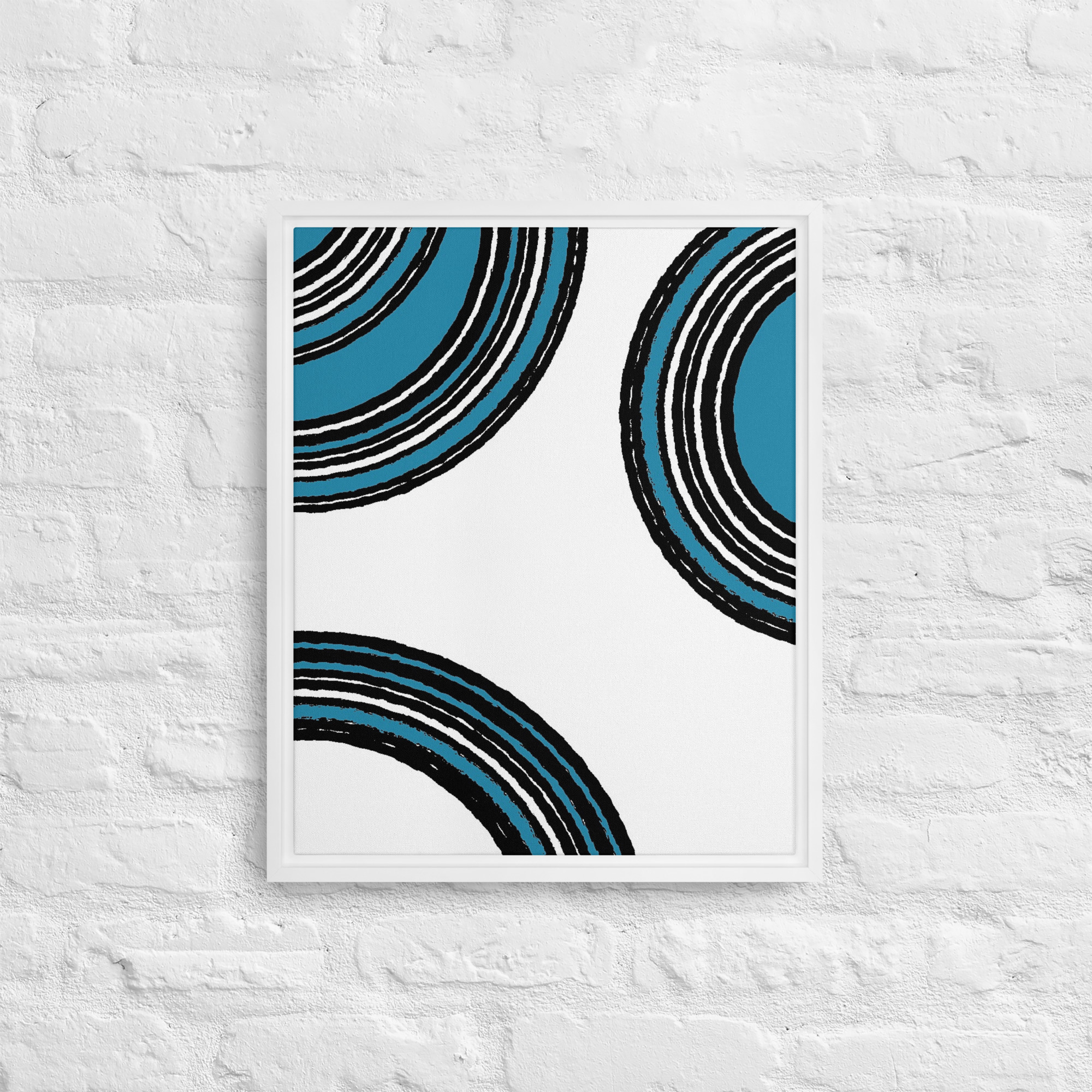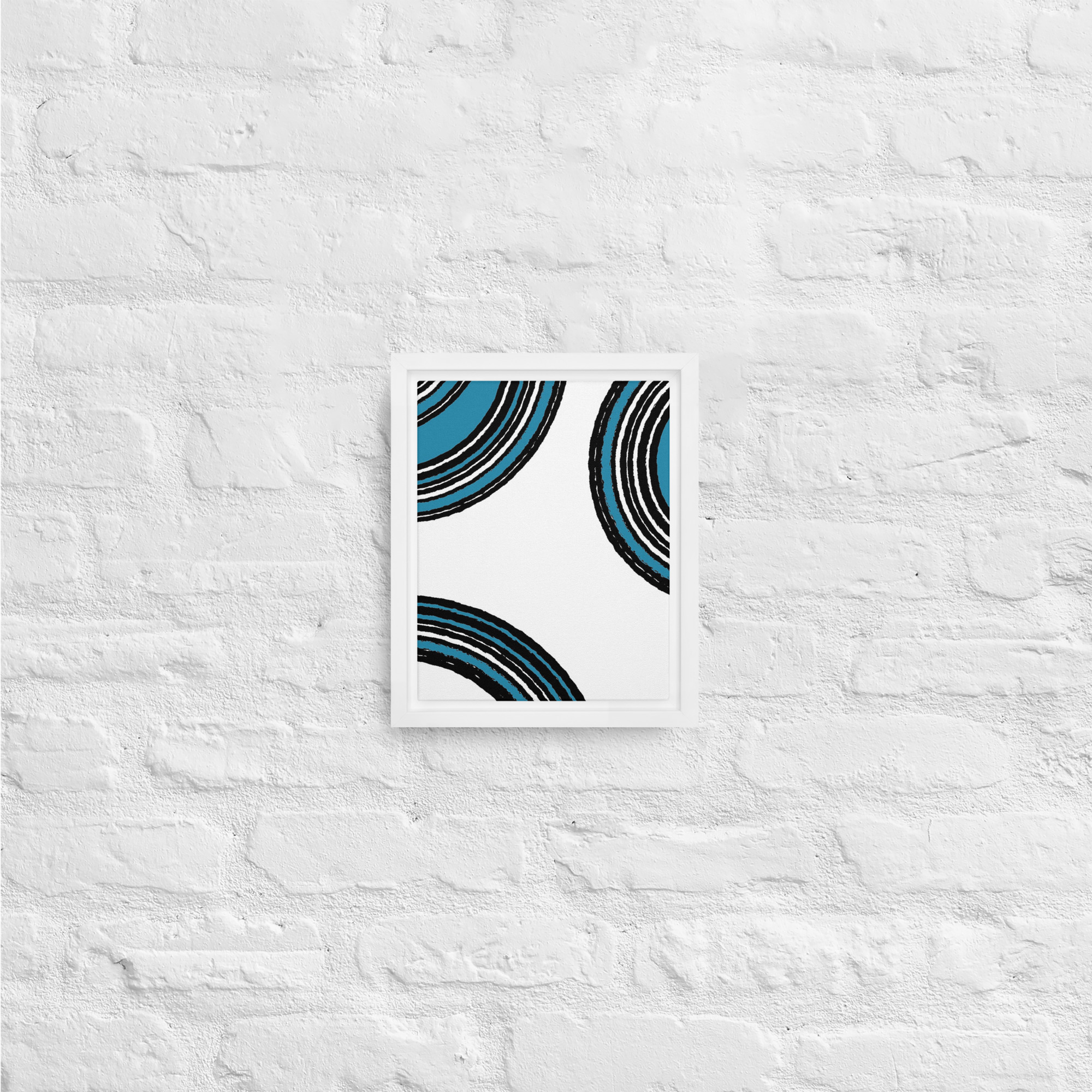 – The framed canvases with brown and black frames have a black inside around the canvas, and the canvases with white frames have a white inside around the canvas.