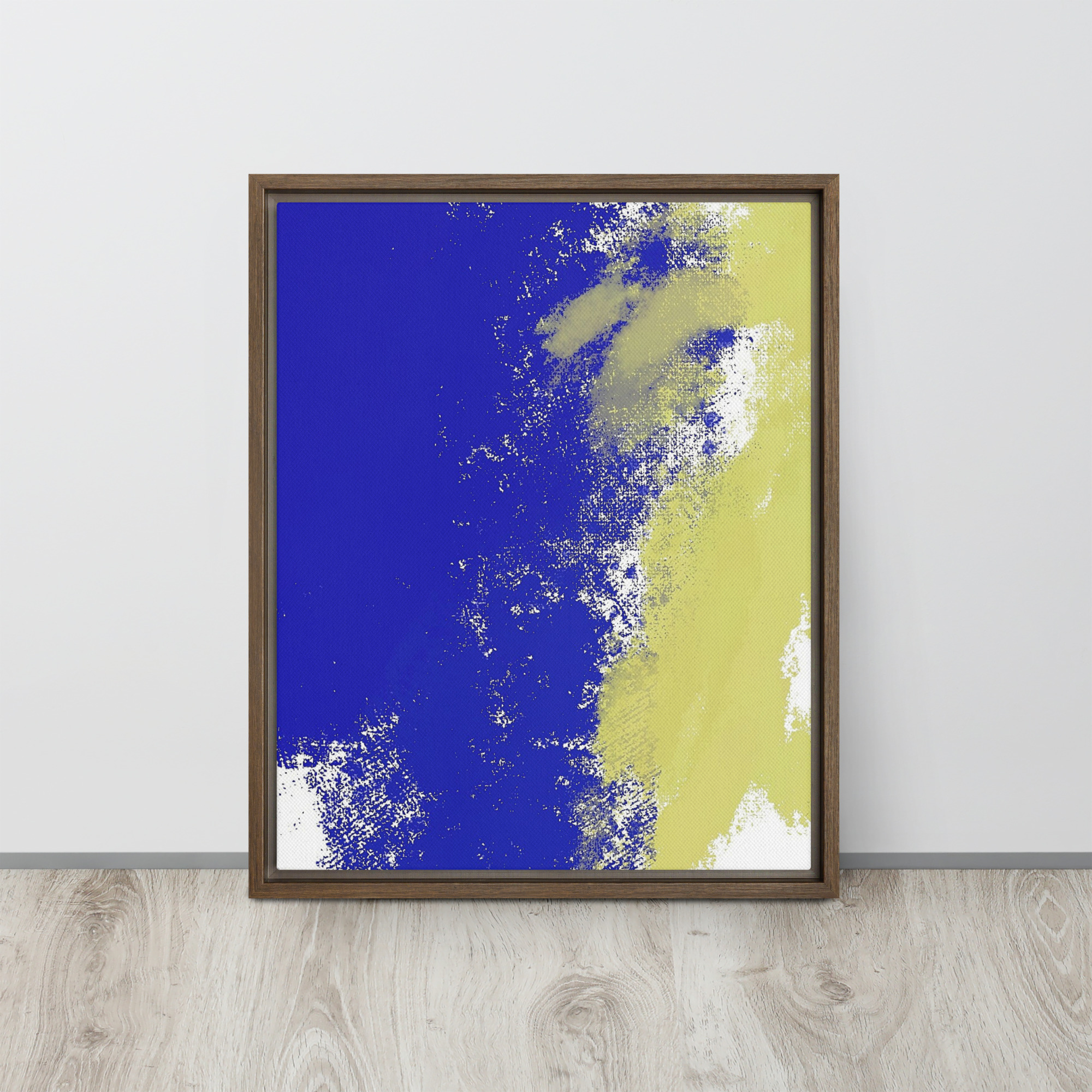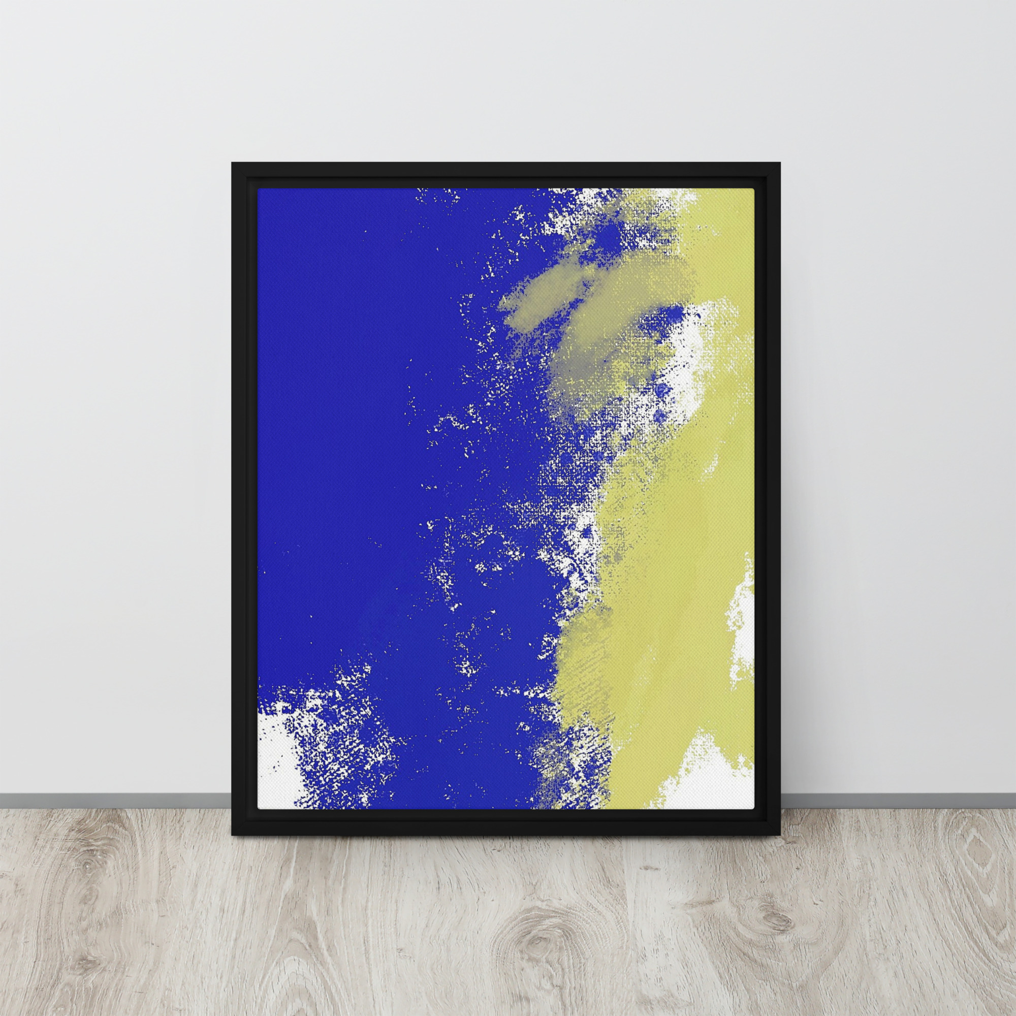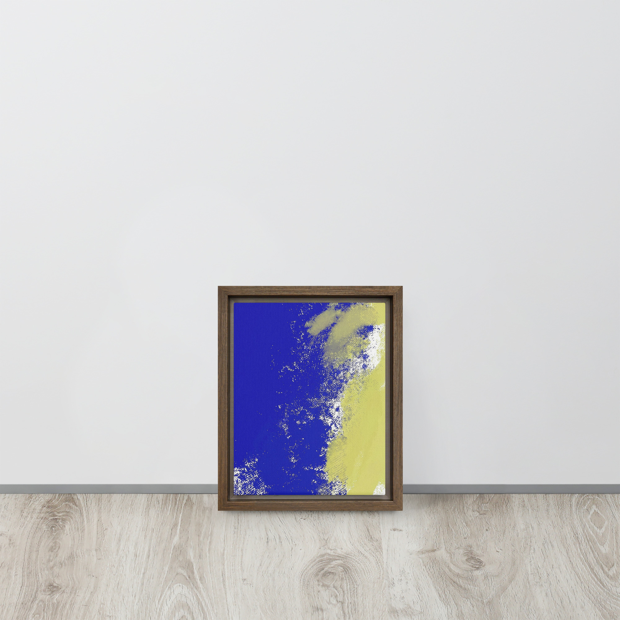 – The framed canvases with brown and black frames have a black inside around the canvas, and the canvases with white frames have a white inside around the canvas.