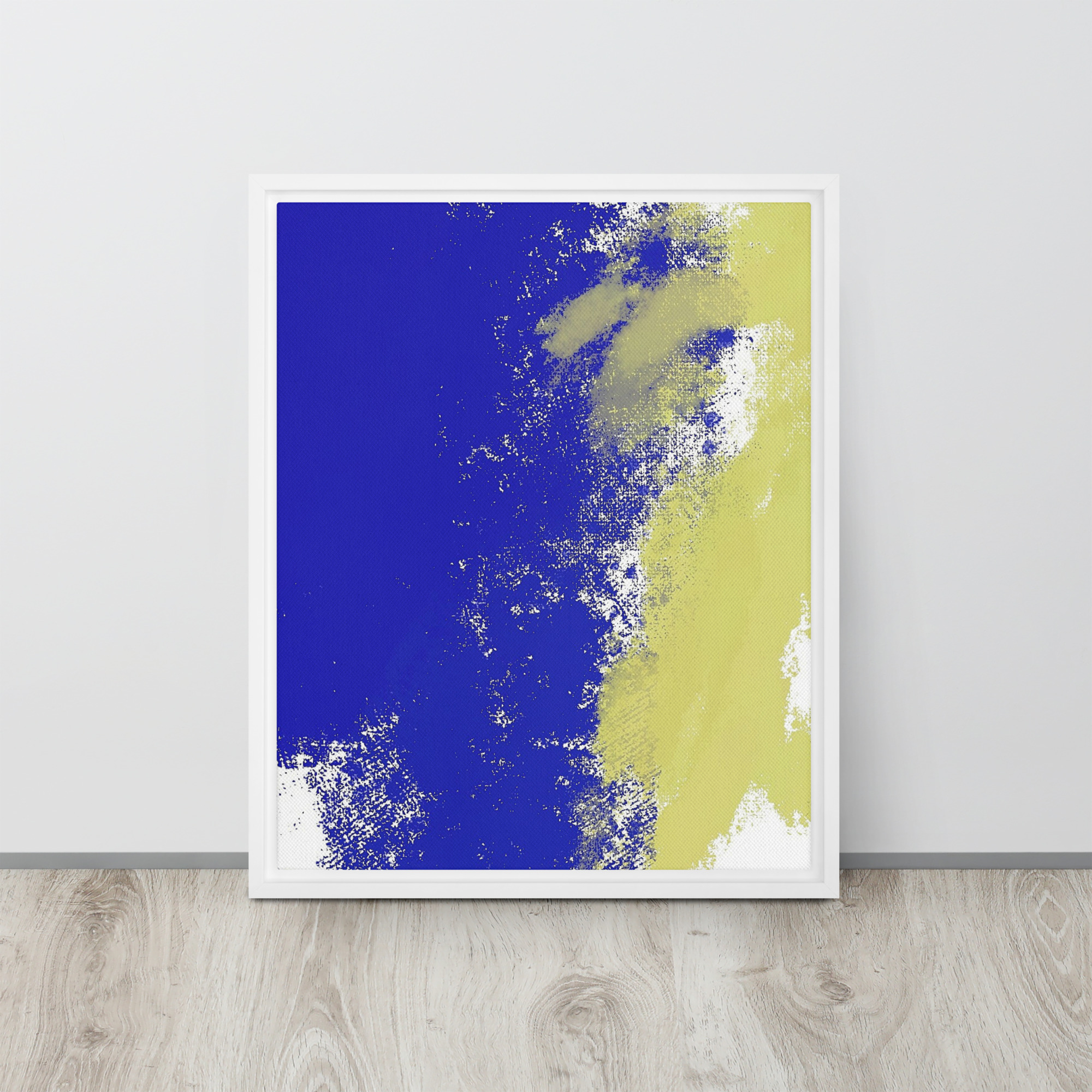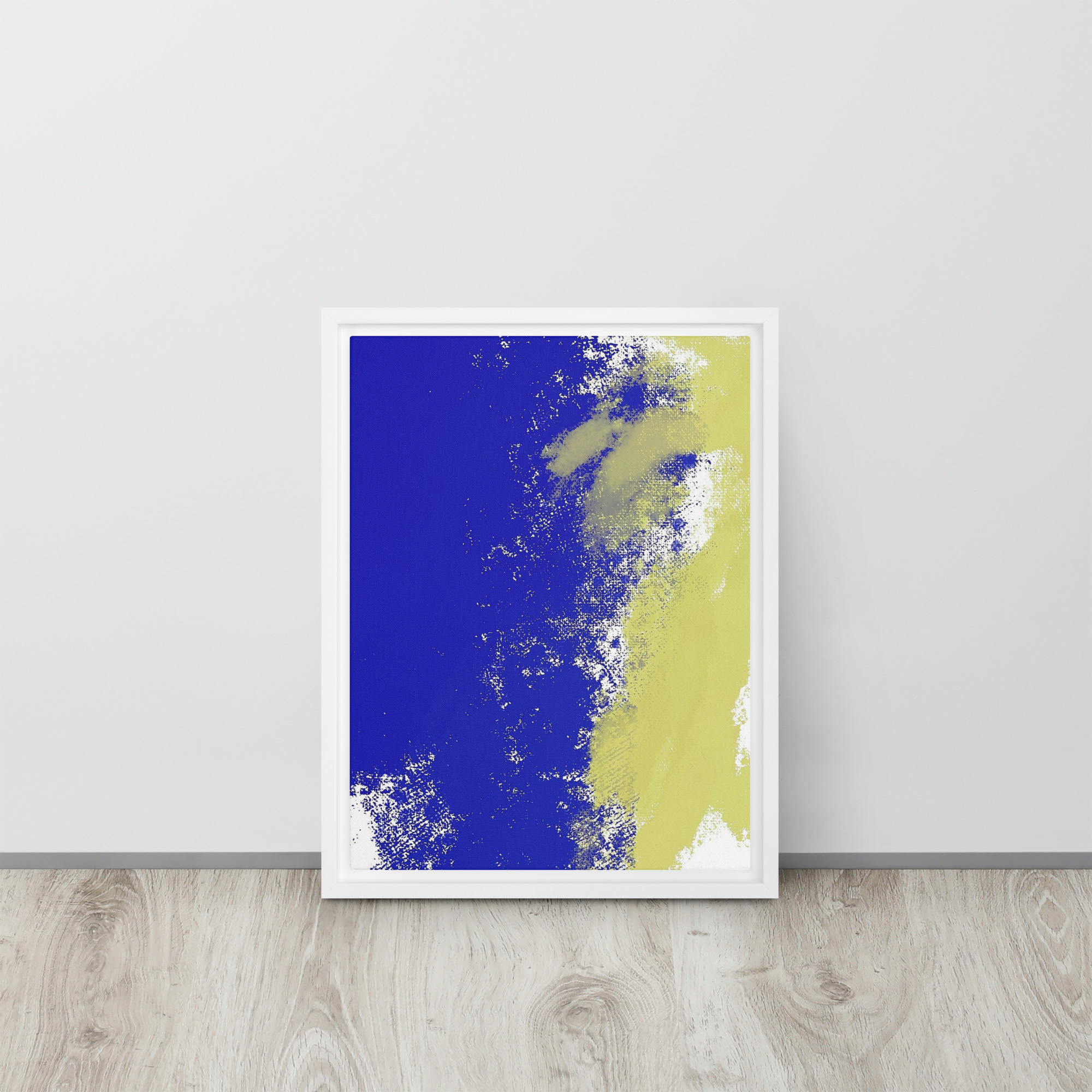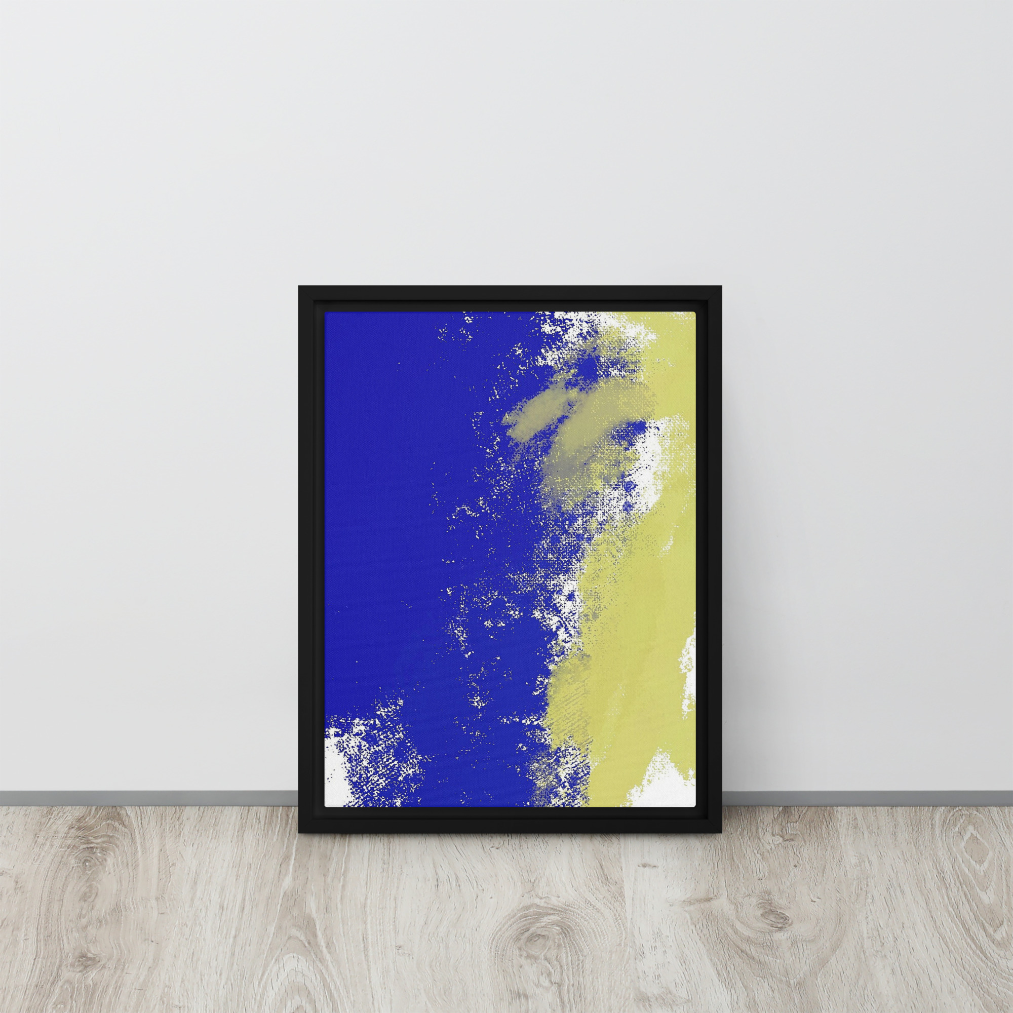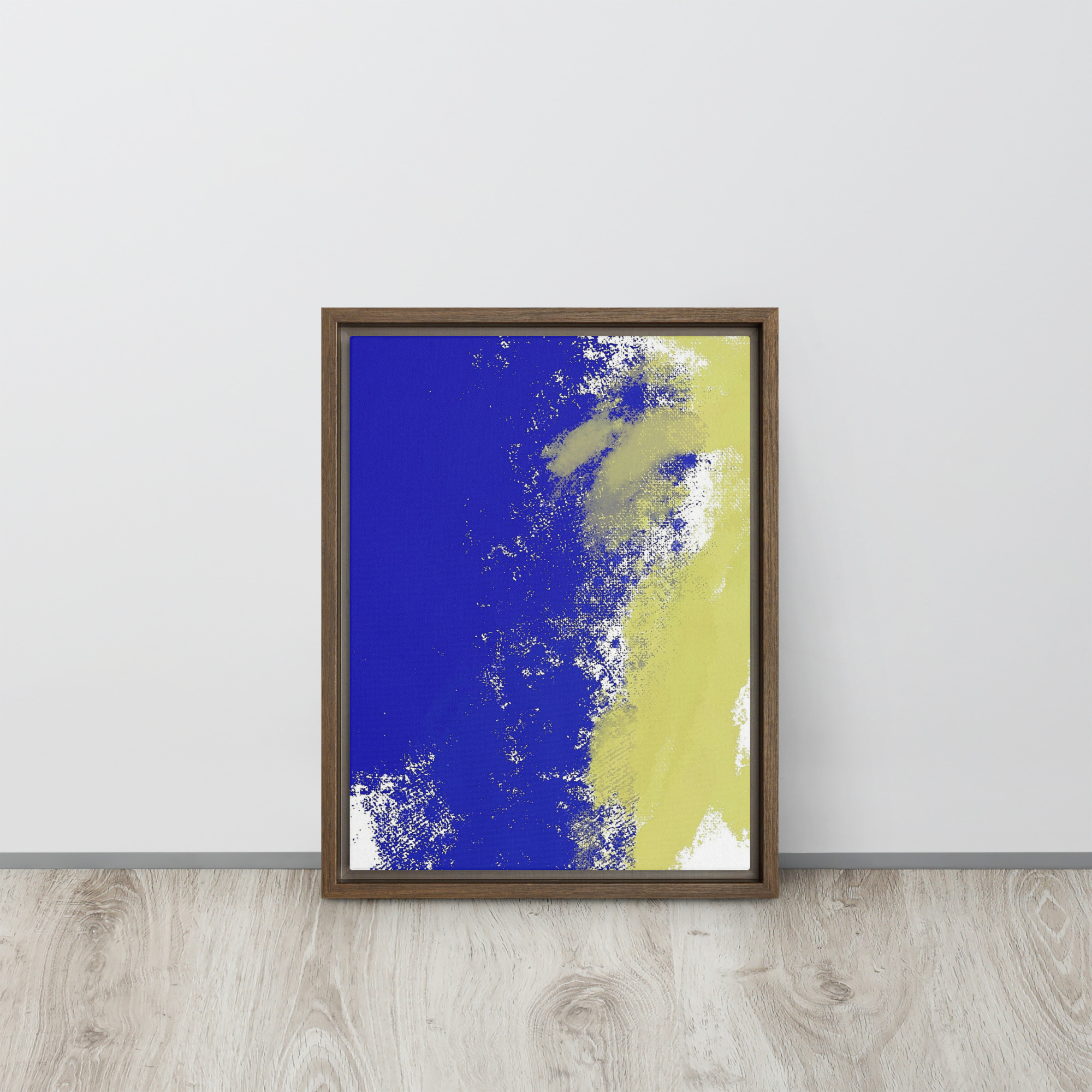 – The framed canvases with brown and black frames have a black inside around the canvas, and the canvases with white frames have a white inside around the canvas.