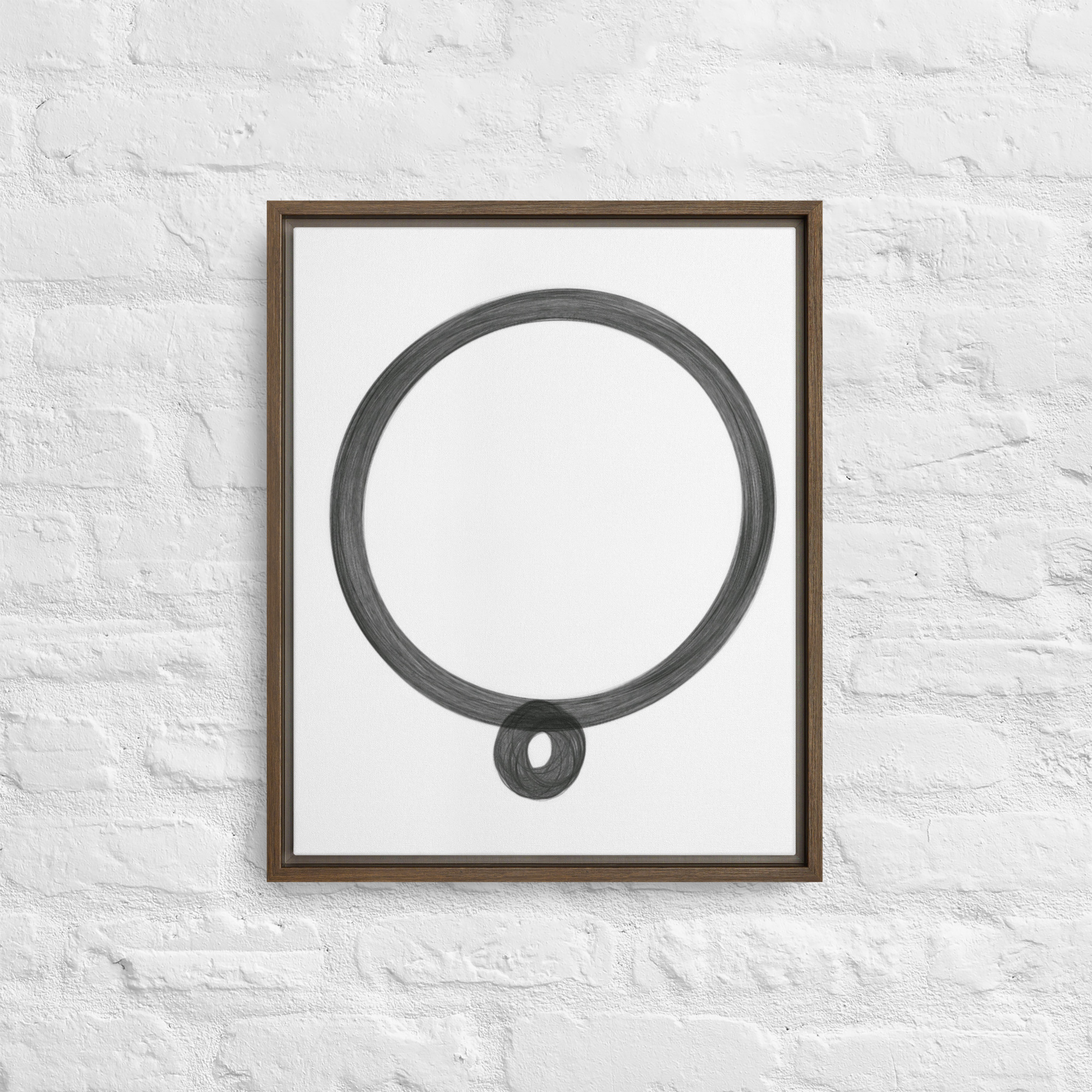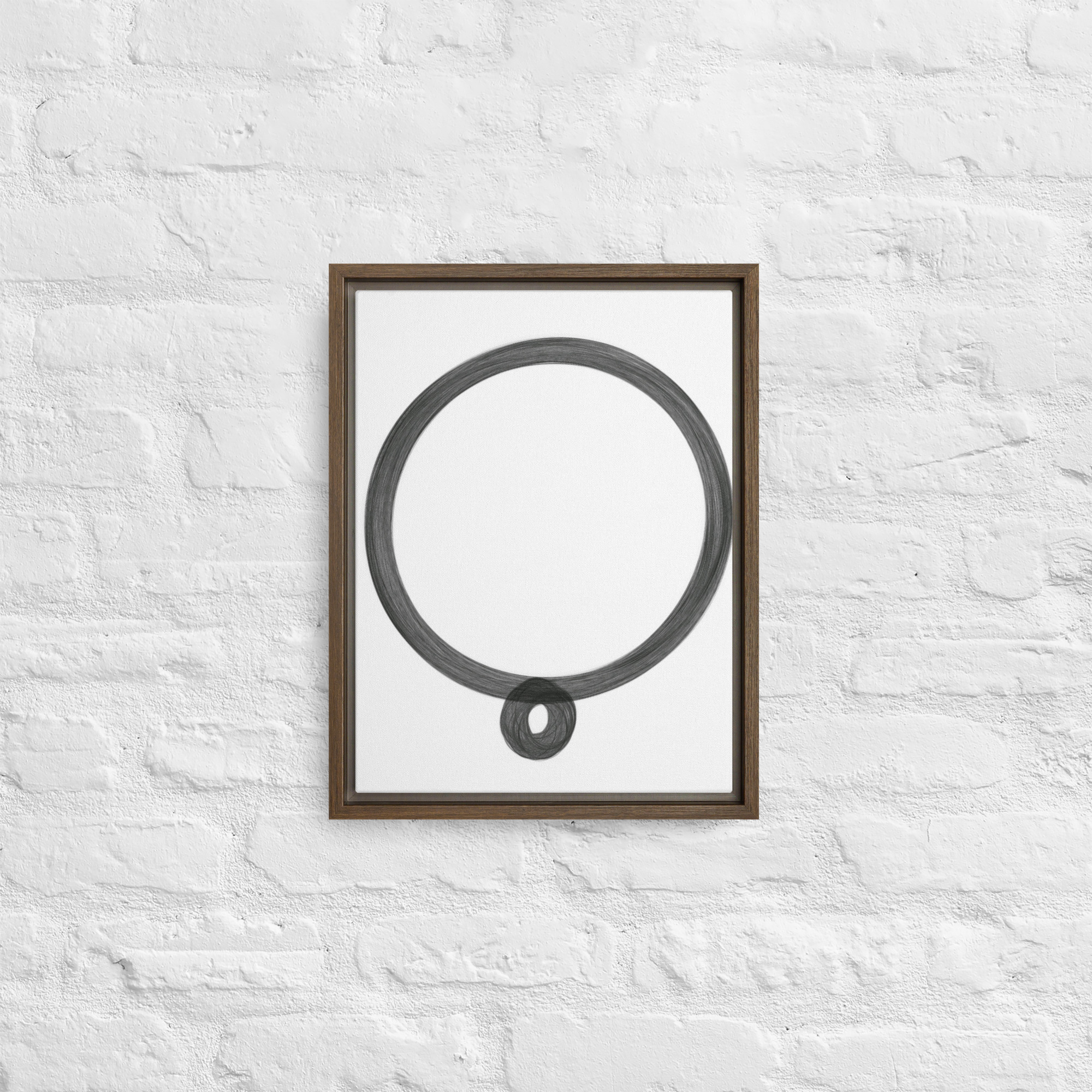 – The framed canvases with brown and black frames have a black inside around the canvas, and the canvases with white frames have a white inside around the canvas.