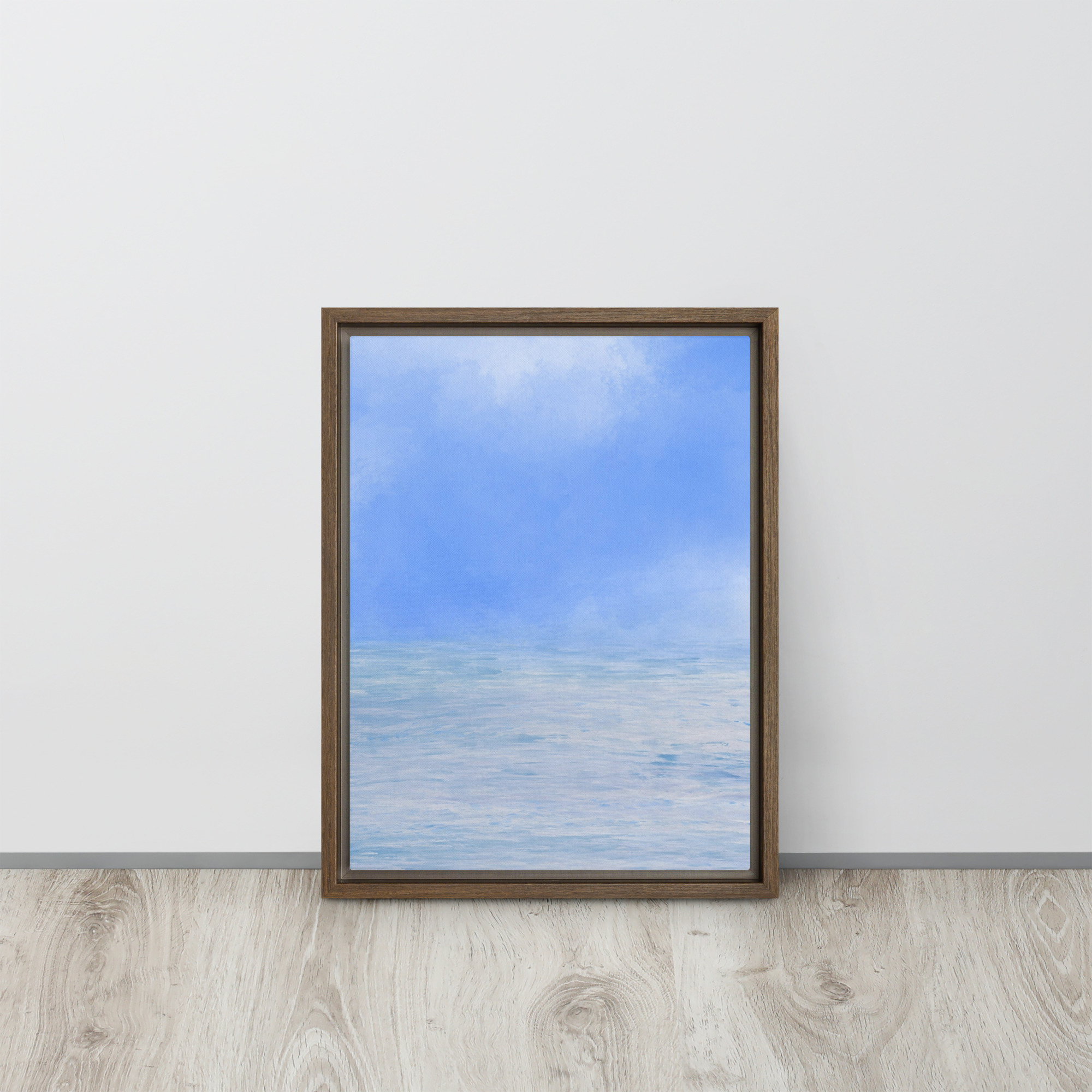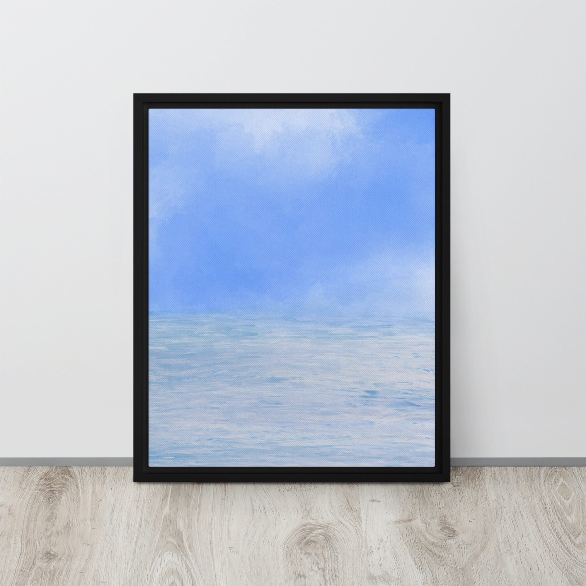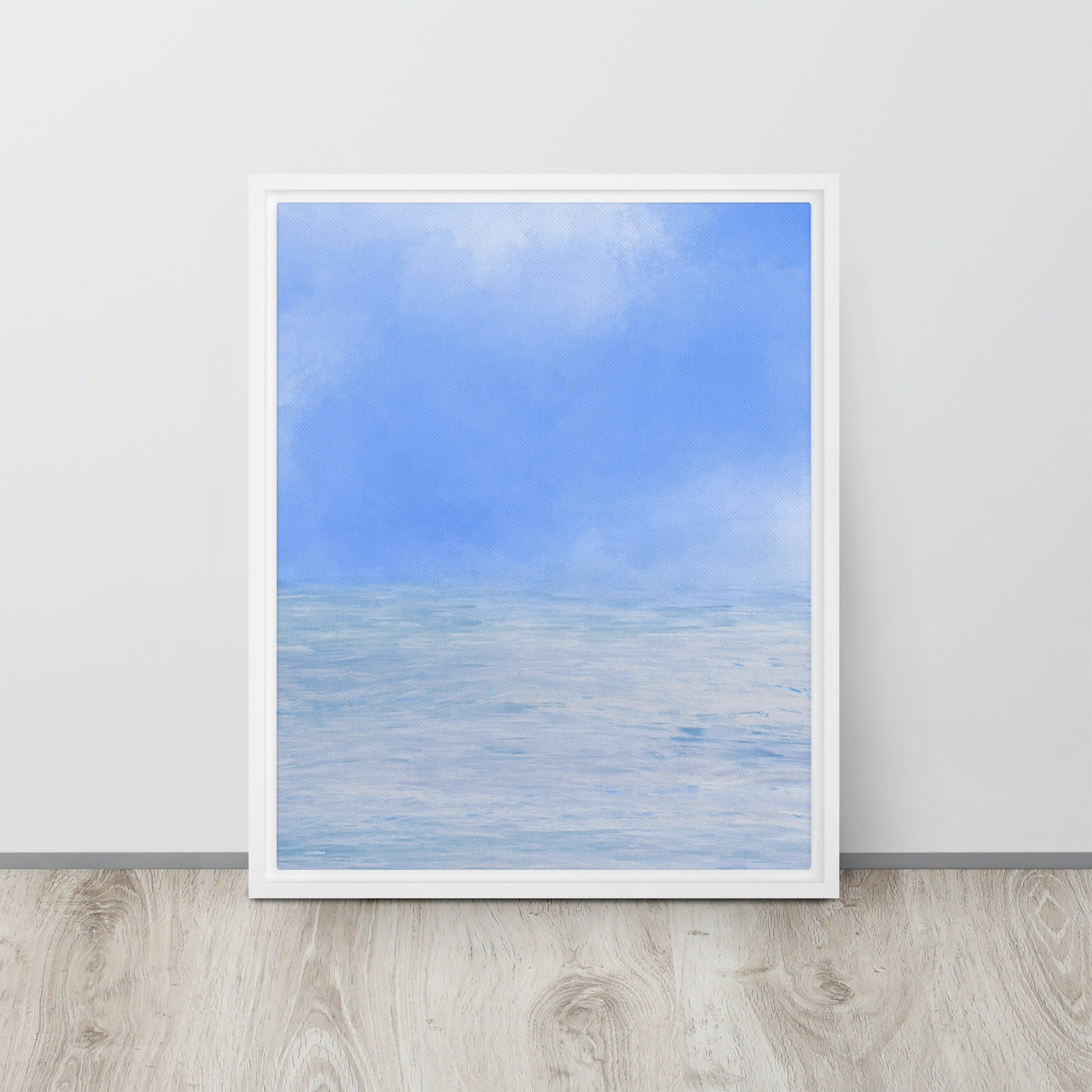 This piece of ocean waves is called “Surfing the Waves”. It is a print of an original, printed on canvas inside a Floating Frame for a finished look.