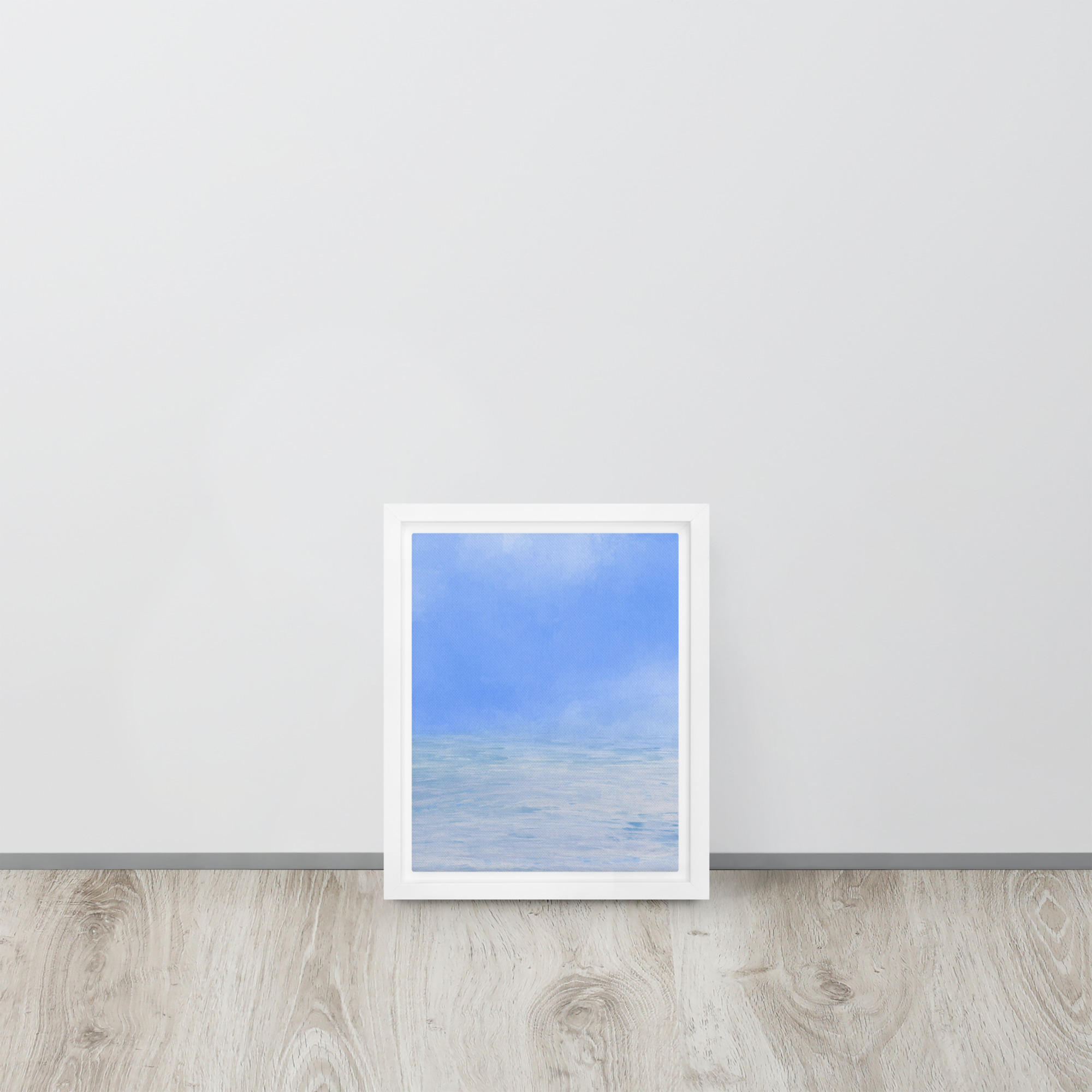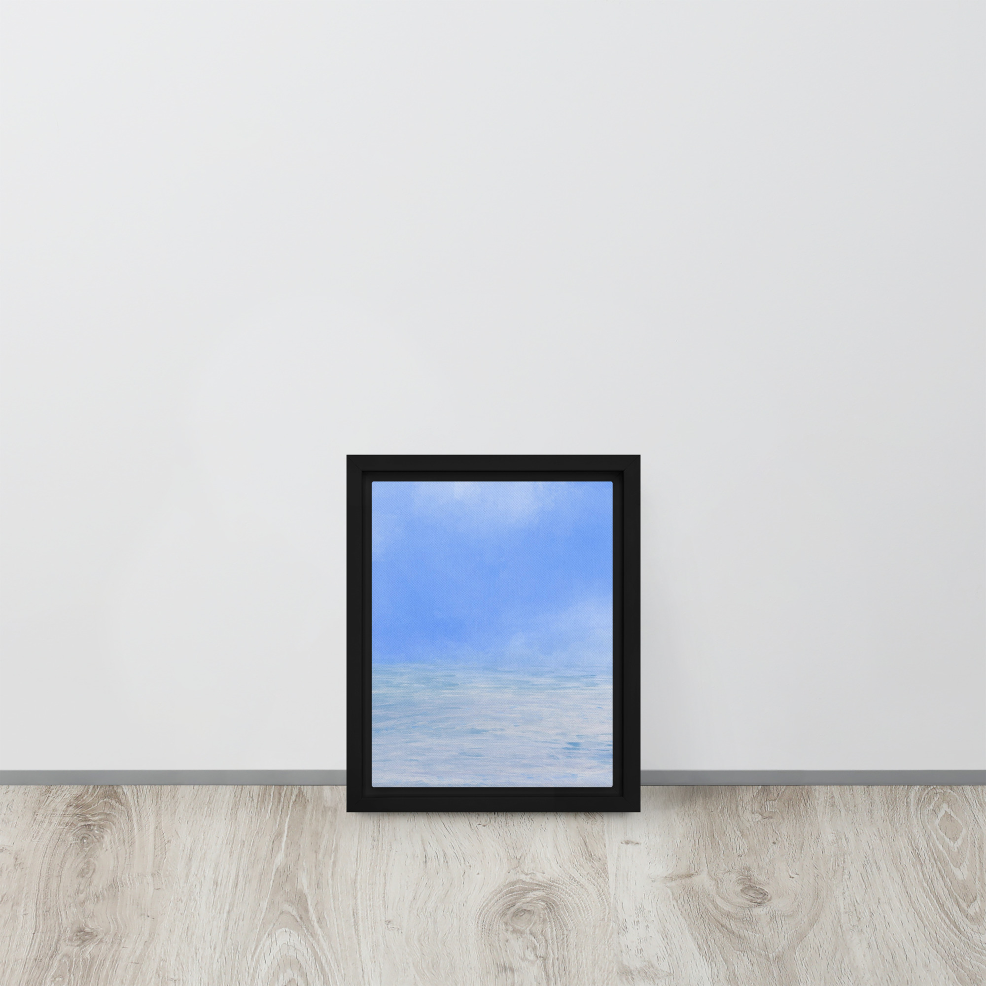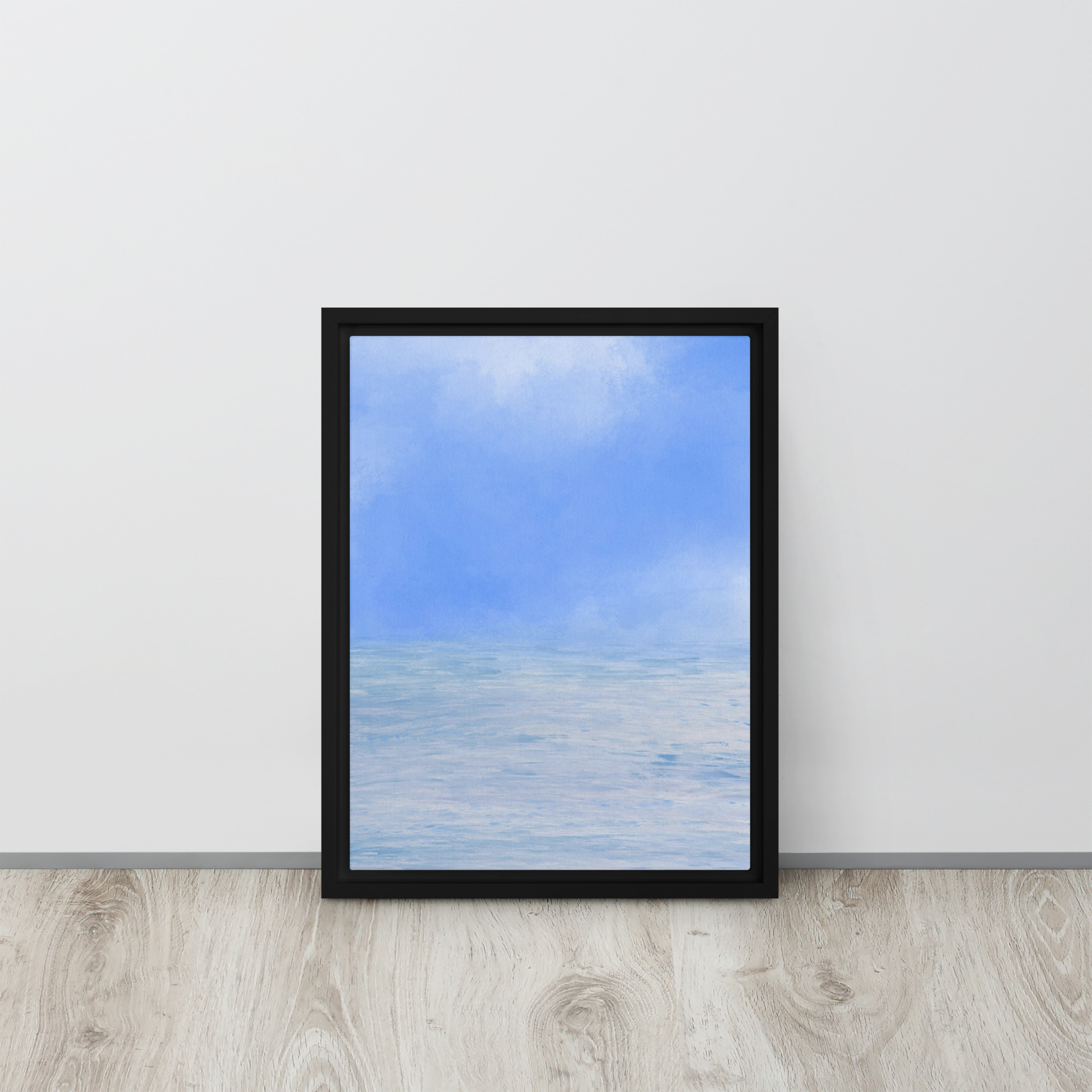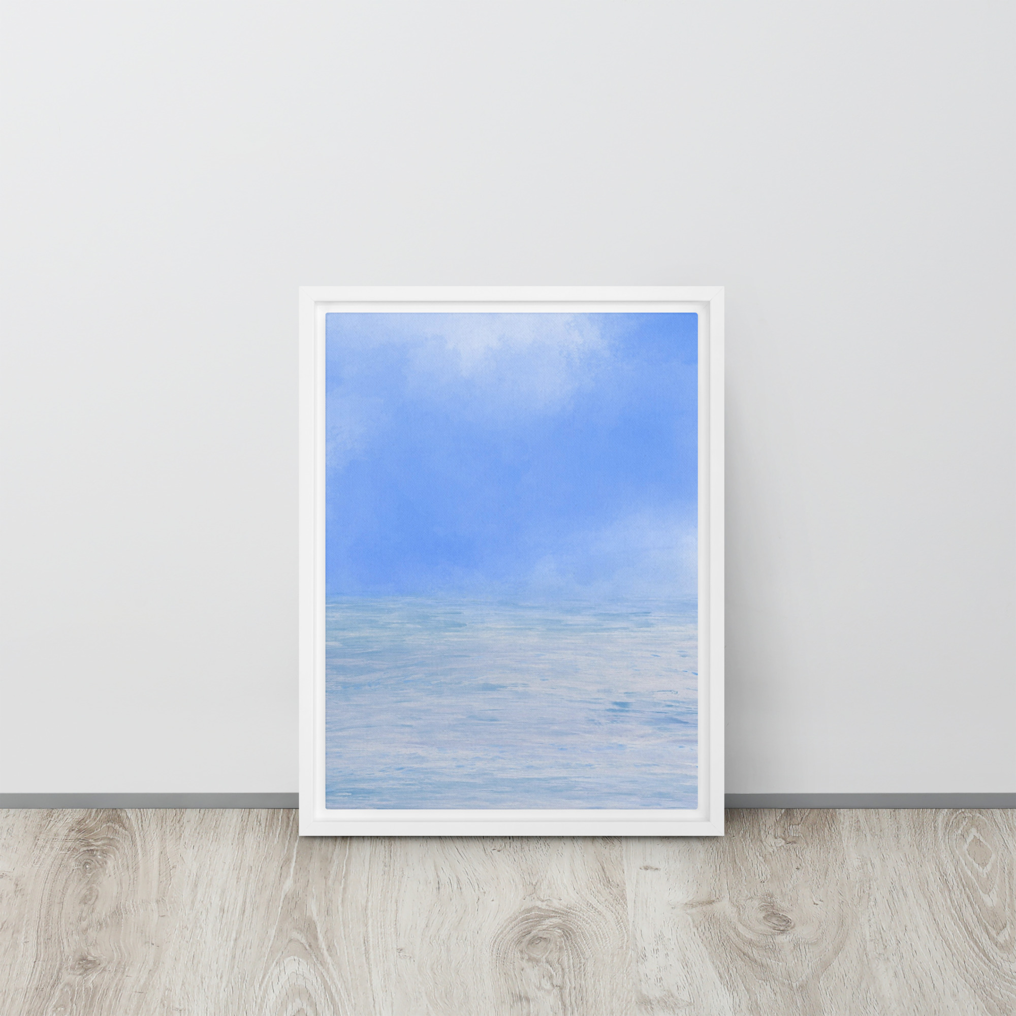 This piece of ocean waves is called “Surfing the Waves”. It is a print of an original, printed on canvas inside a Floating Frame for a finished look.