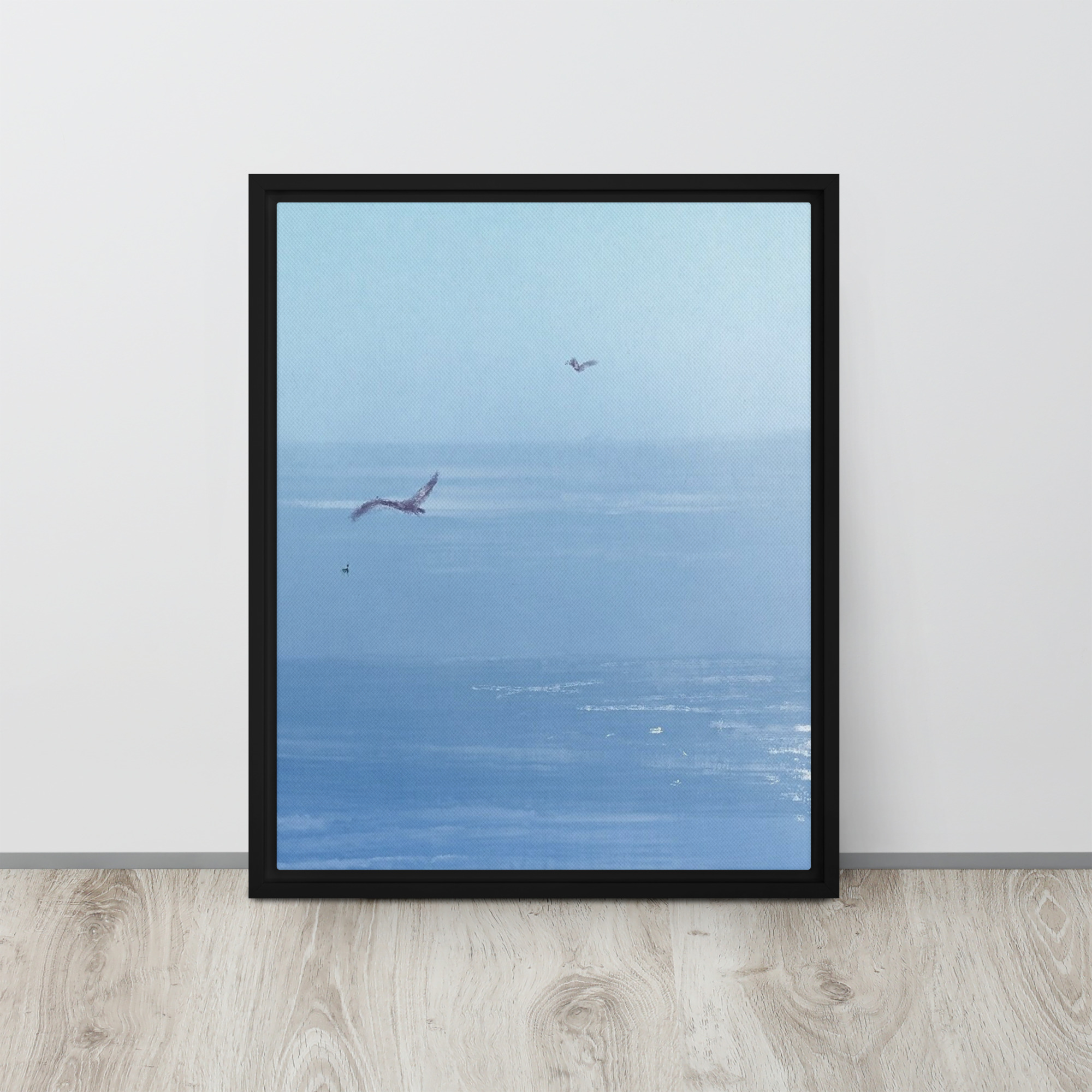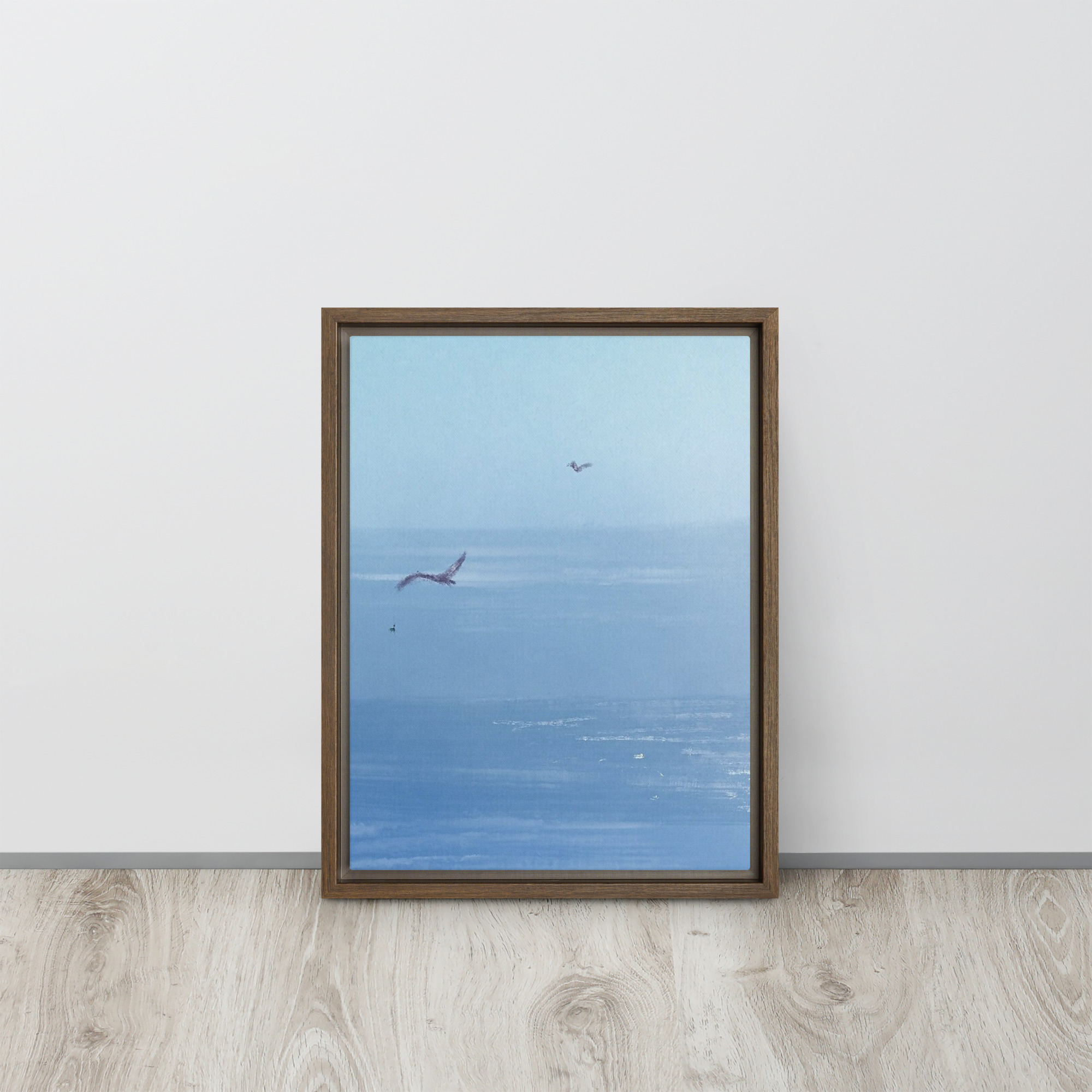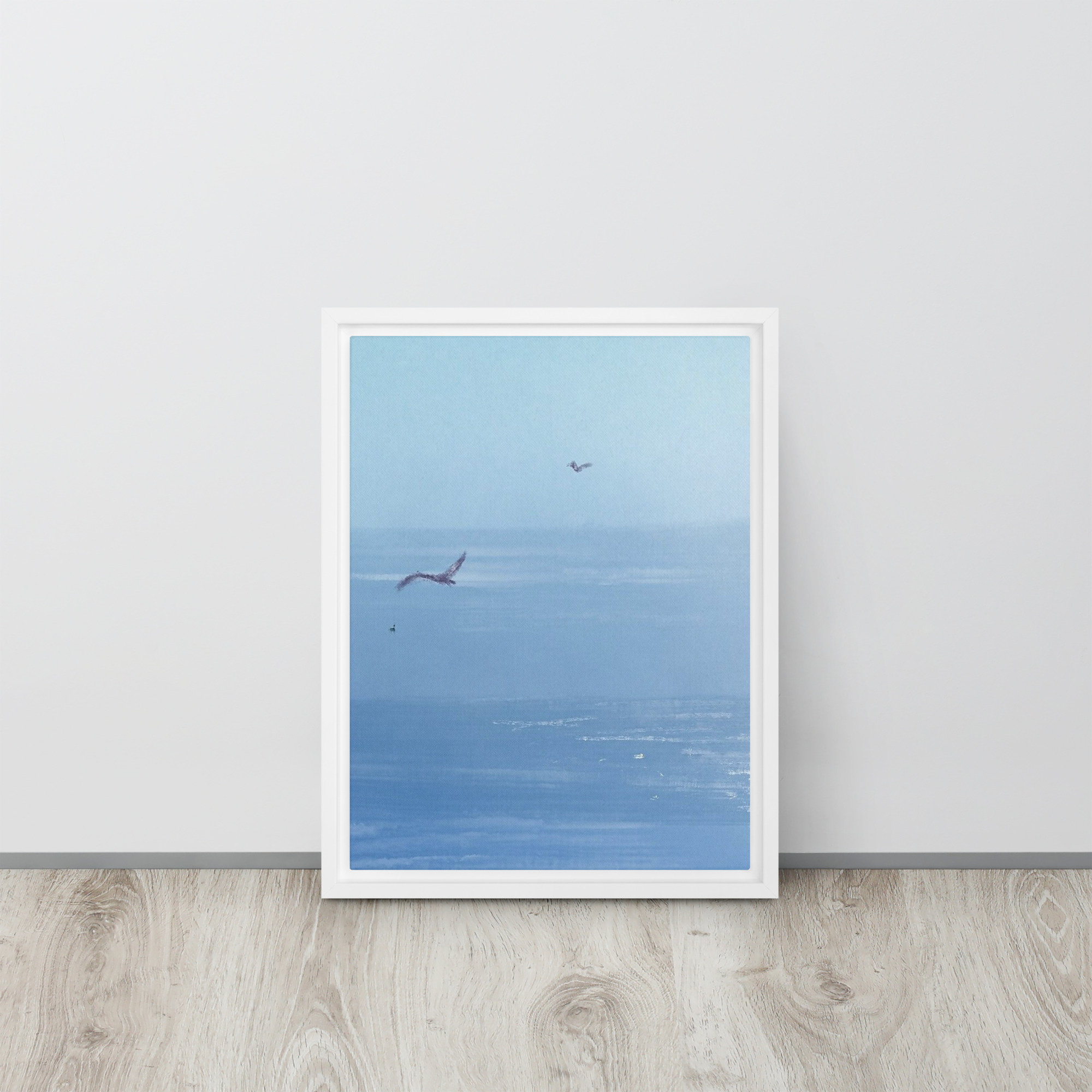 If you’ve ever been to the ocean, you know that seagulls are a major part of the scenery. Their calls are like the harmony along with the waves, it’s like music! This print of an original painting is on a canvas and comes in a floating frame for a finished look.