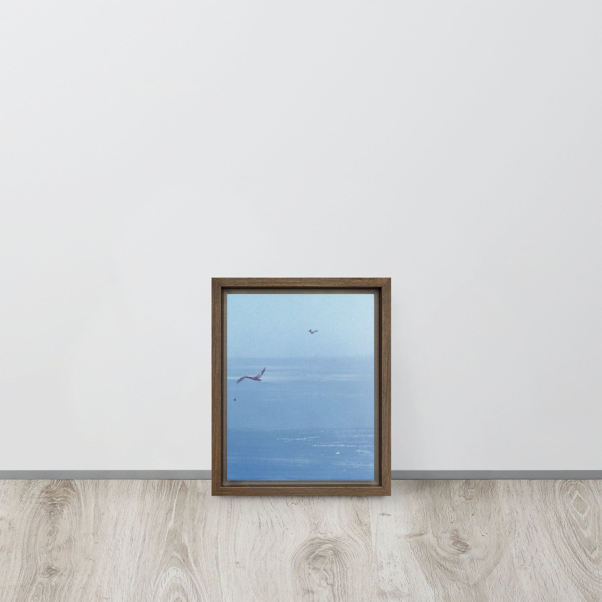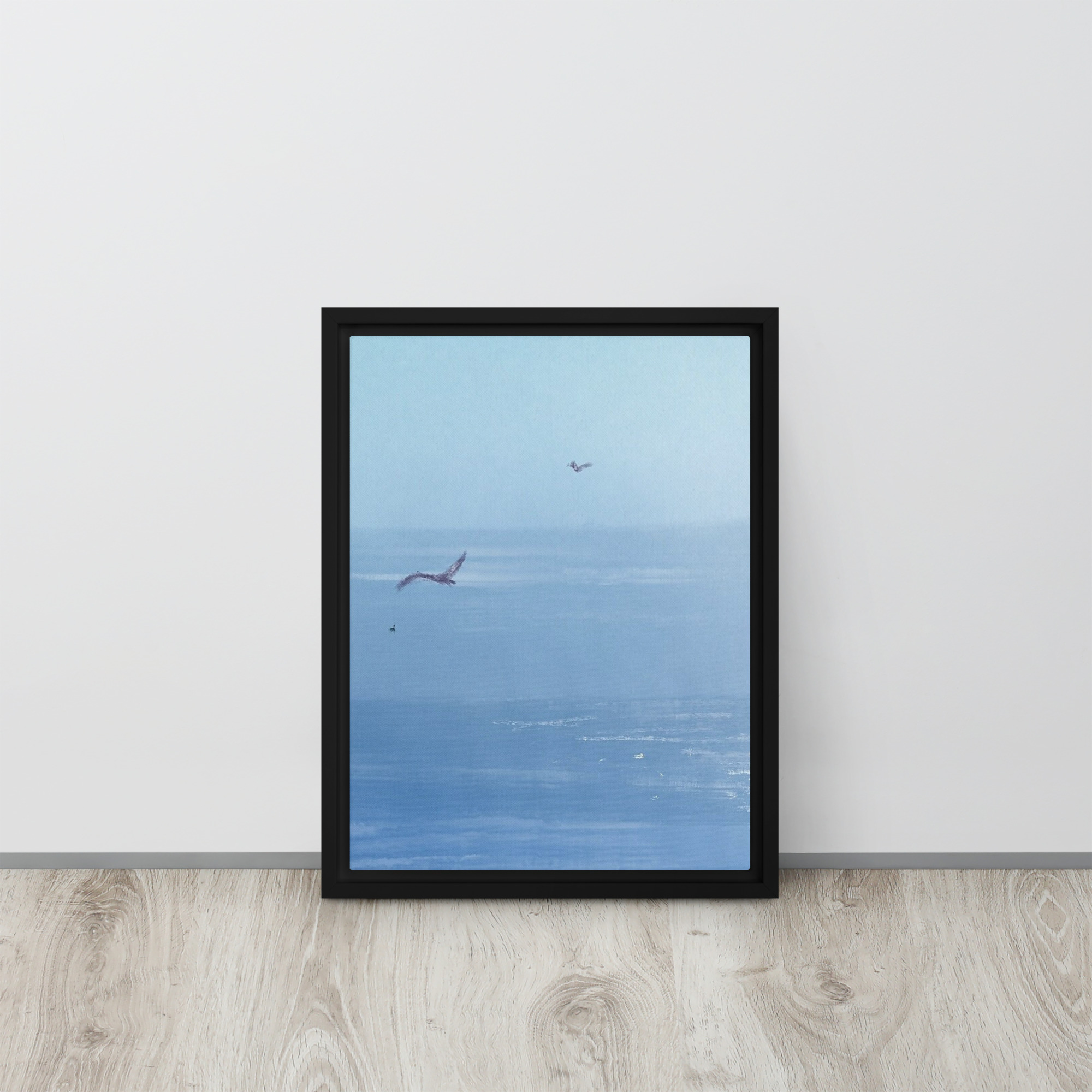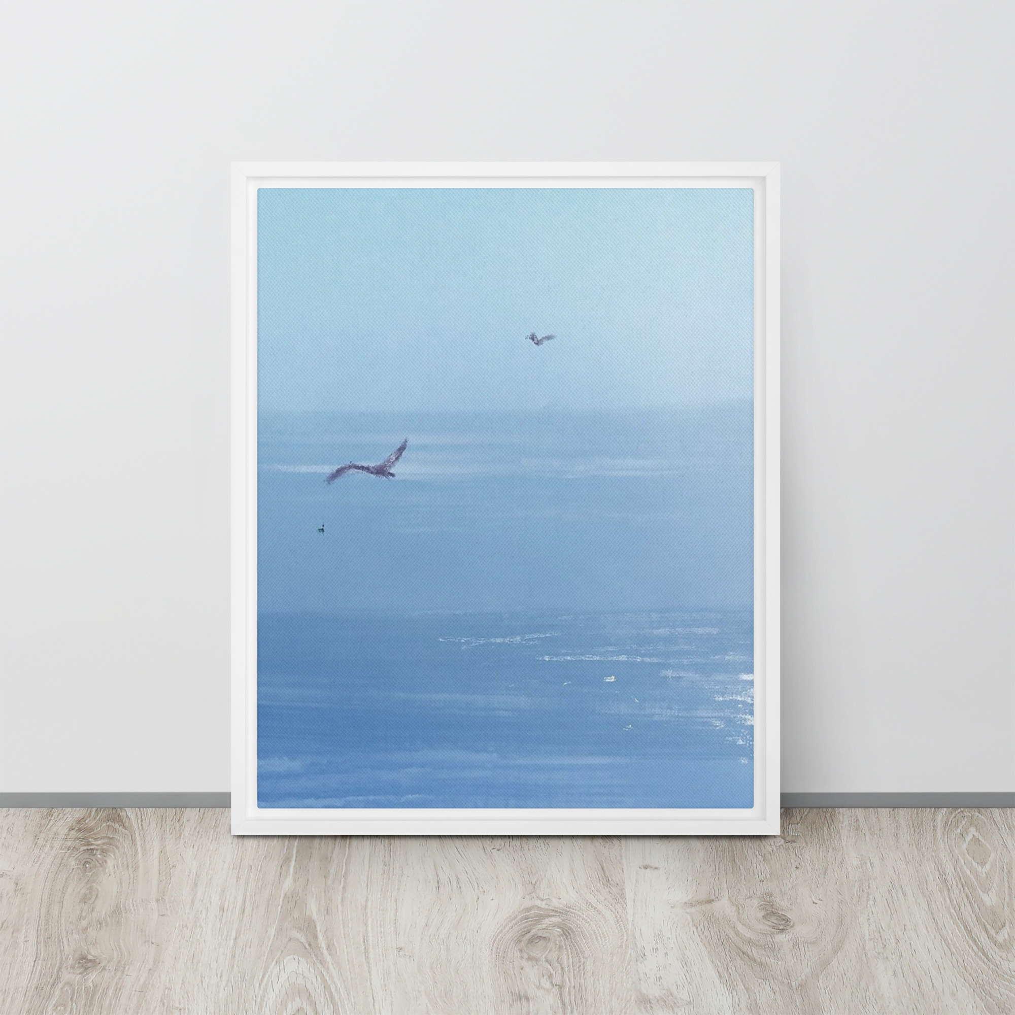 If you’ve ever been to the ocean, you know that seagulls are a major part of the scenery. Their calls are like the harmony along with the waves, it’s like music! This print of an original painting is on a canvas and comes in a floating frame for a finished look.
